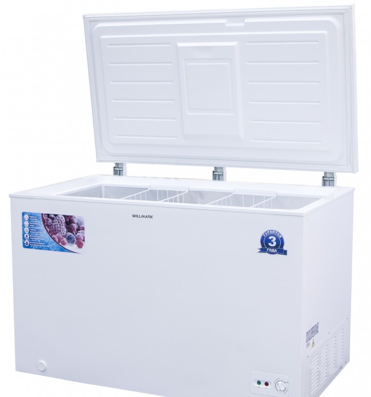 WILLMARK СF-478M - это надежный морозильный ларь, с общим объёмом 390литров, обеспечивающий безопасное и длительное хранение продуктов питания. Низкий уровень шума, экономный режим потребления электроэнергии, возможность использовать ларь как морозильник, так и холодильник – достоинства данной модели! Морозильный ларь в белом исполнении, выполнен в привлекательном дизайне, имеет компактные размеры, что позволит ему отлично вписаться в любой интерьер. Модель снабжена двумя роликами для удобства перемещения. Панель управления состоит из механического регулятора мощности охлаждения размеченного на 9 единиц с устанавливаемой температурой внутри. Первый 3 деления применяются при использовании этой модели в качестве холодильного оборудования с температурой внутри от +5С до +1С, последующие деления понижают температуру камеры для работы в режиме морозильника. При средней загруженности температура заморозки регулируется от -16 до -24 градусов Цельсия. А также световые индикаторы питания сети (зелёного цвета), и индикатор работы (красного цвета). В комплектацию модели входит две подвесные корзины. Длина сетевого шнура 160 сантиметров с сечением провода 3G0,75мм.