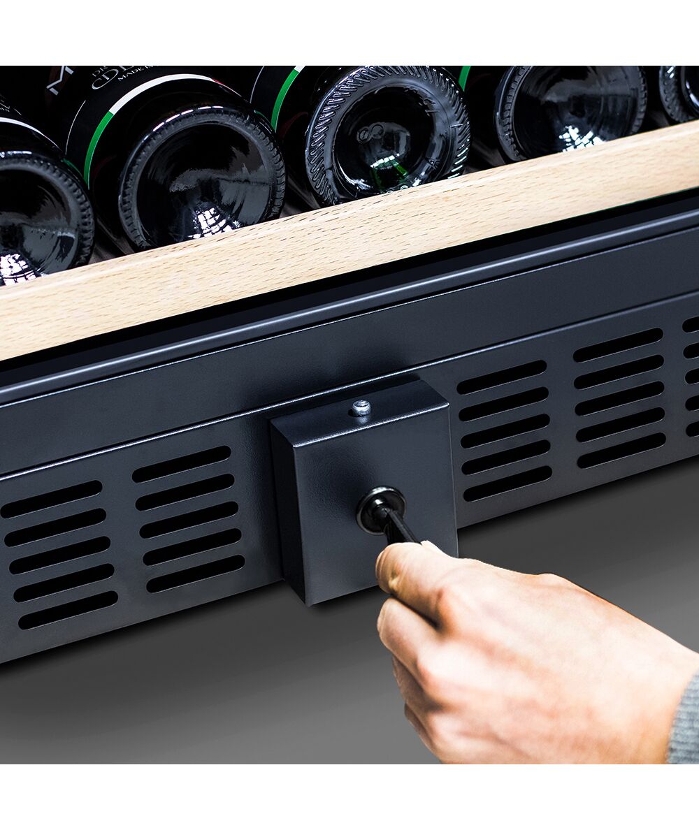- после установки винного шкафа необходимо проверить, насколько ровно Вы настроили ножки, потому как использование винного шкафа, установленного под углом, может привести к поломке дверцы и повышенному шуму при работе.