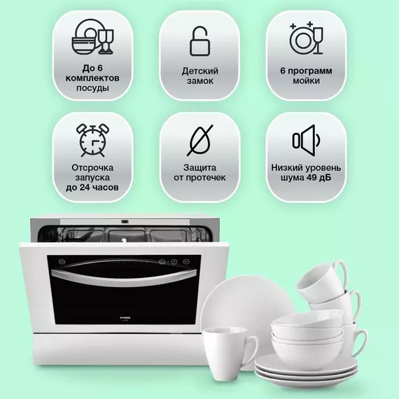 Посудомоечная машина Hyundai DT305 белый, компактная