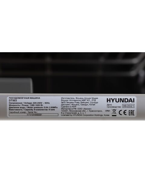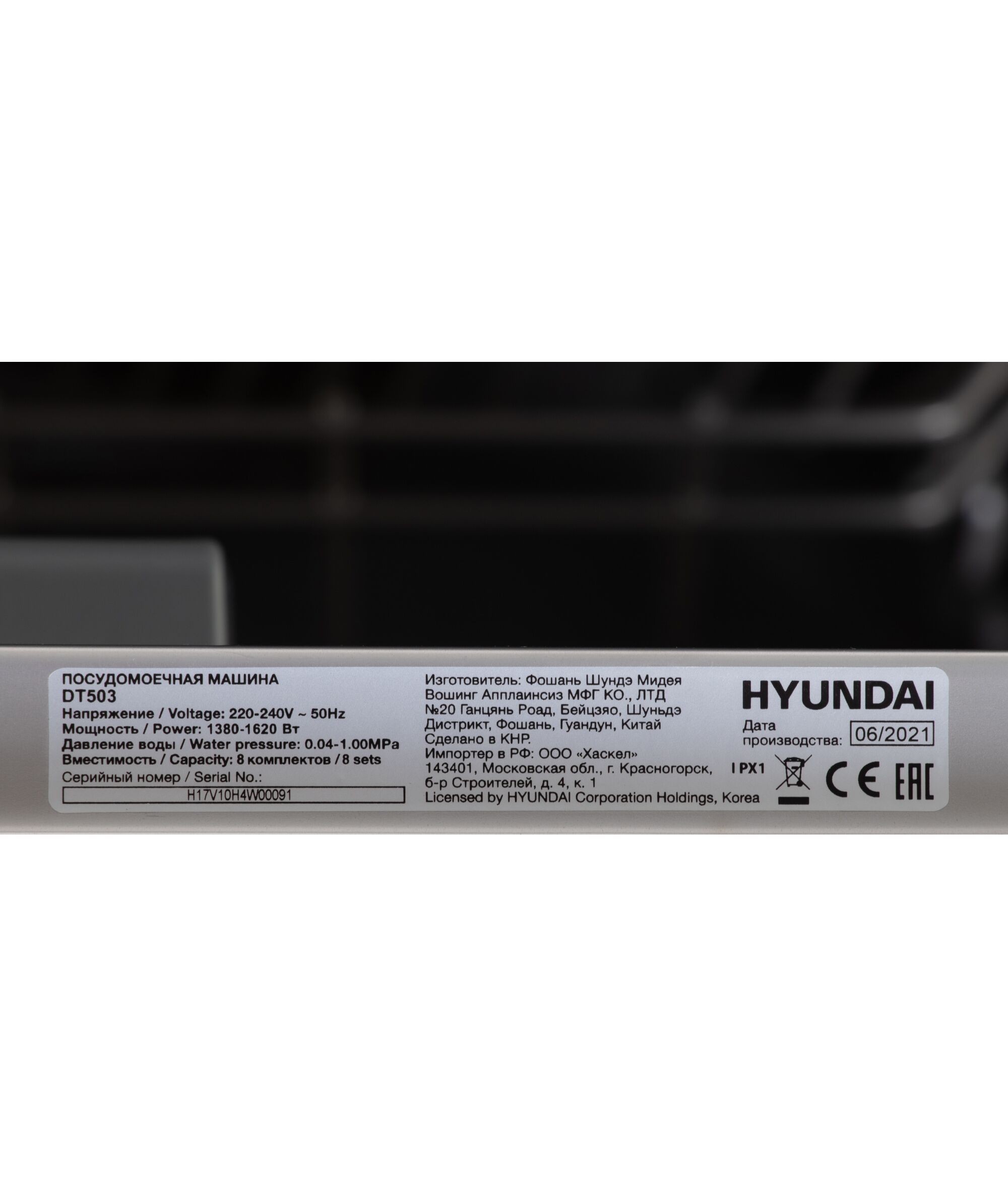 Посудомоечная машина Hyundai DT503 белый, компактная