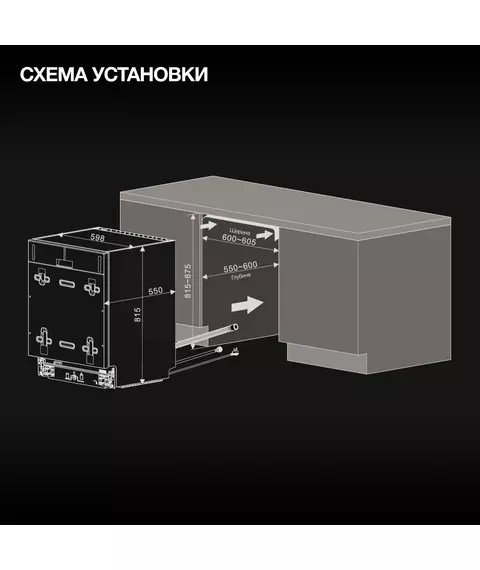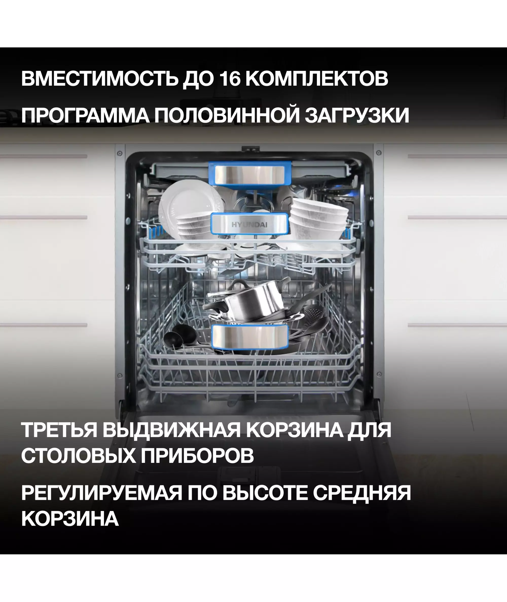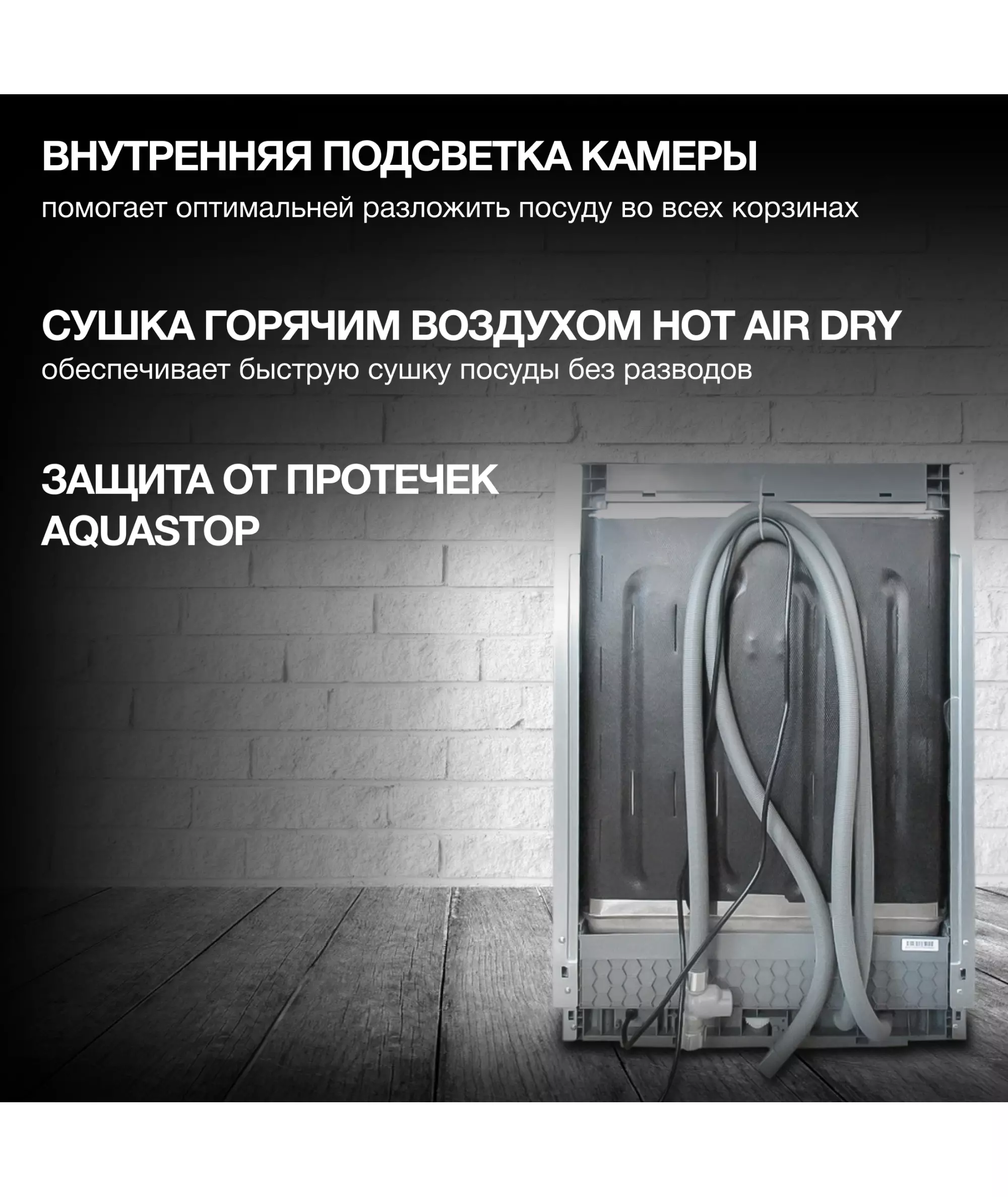 | Внутренняя конструкция | корзина для столовых приборов, освещение, регулируемая по высоте корзина для посуды |
