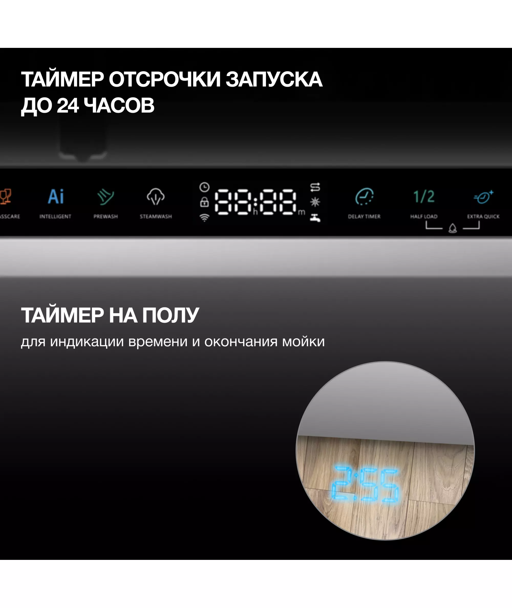 | Особенности | Таймер на полу;Дополнительные функции: Экстра быстро, Дополнительная сушка, Экстра гигиена, Ночной режим, Хранение до 168 часов, Очистка камеры |