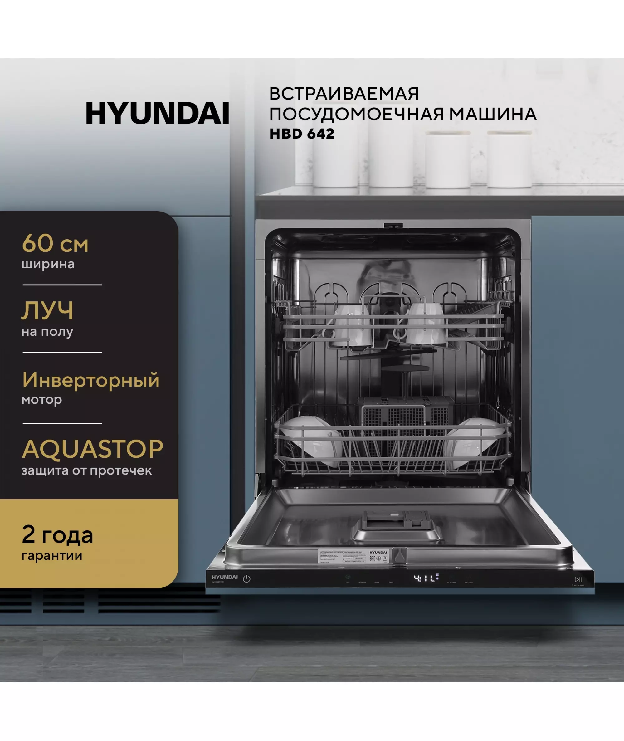 Посудомоечная машина Hyundai HBD 642 встраив. 2100Вт полноразмерная нержавеющая сталь инвертер