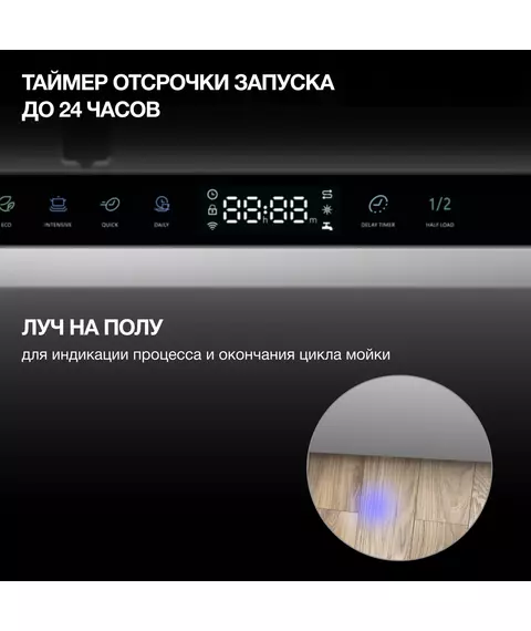 | Индикация | луч на полу, наличия ополаскивателя, наличия соли |