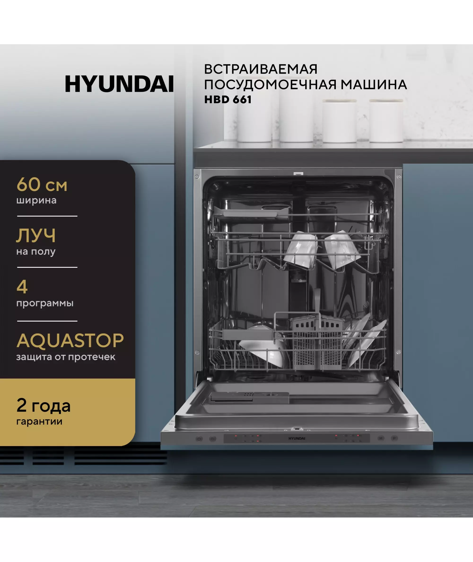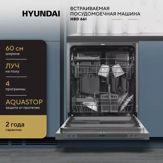 Посудомоечная машина Hyundai HBD 661 встраив. 2100Вт полноразмерная серебристый