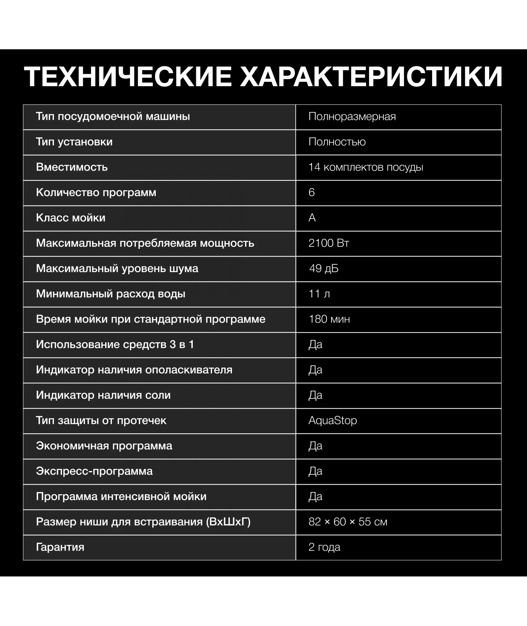 | Тип посудомоечной машины | полноразмерная |