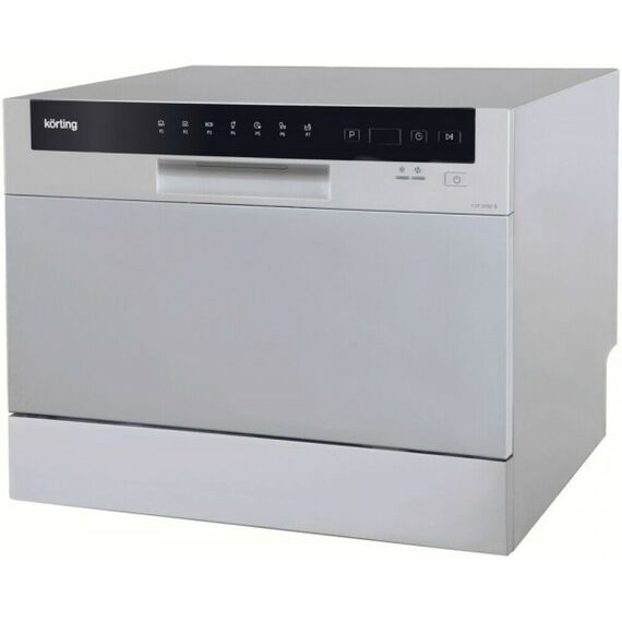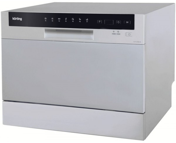 Посудомоечная машина Korting KDF 2050 S компактная, отдельно стоящая, на 6 комплектов, класс мойки A, 7 программ, конденсационная сушка, защита от протечек, таймер отсрочки запуска, размеры (ШxГxВ): 55x50x43.8 см, цвет: серебристый