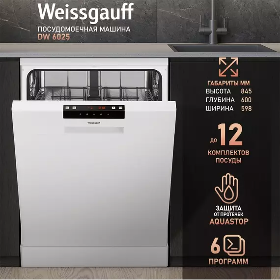 Посудомоечная машина Weissgauff DW 6025 белый, полноразмерная [431823]
