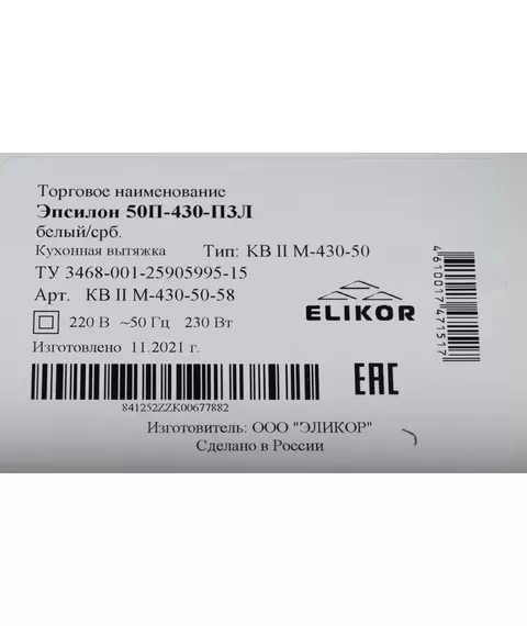 Описание ELIKOR Эпсилон 50П-430-П3Л [841252]