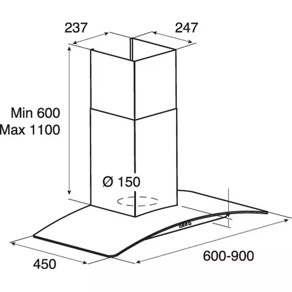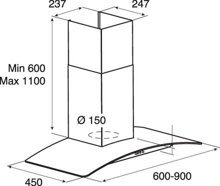 | Высота вытяжки (мин / макс) | 60x110см |