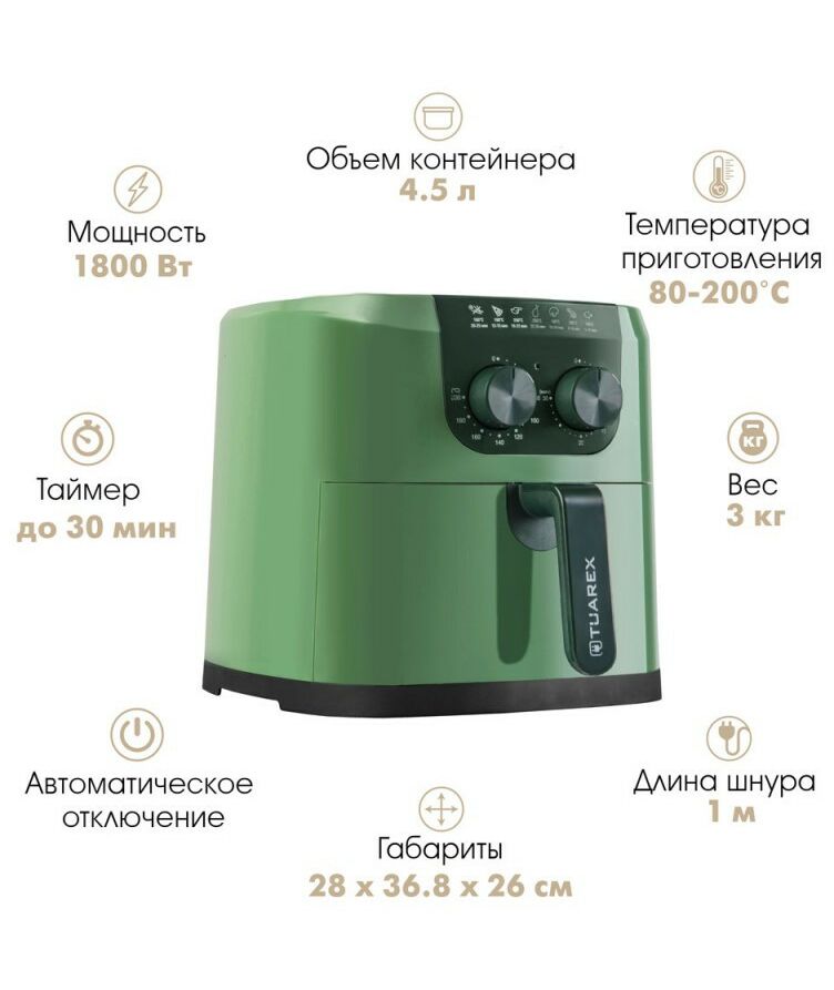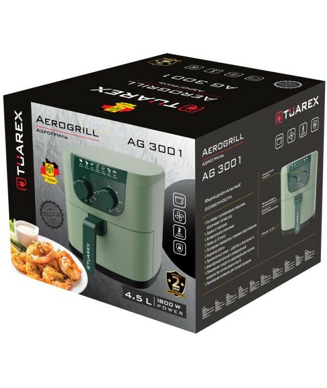 Стильный, современный, многофункциональный аэрогриль Tuarex AG-3001 – это лучший помощник для вашей кухни. С помощью этой модели, Вы сможете быстро приготовить блюда без вреда здоровью, так как для этого практически не нужно использовать масло. И идеально подойдет для людей, которые придерживаются правильному питанию