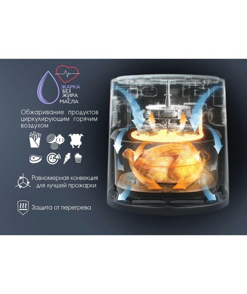 - Обжаривание продуктов циркулирующим горячим воздухом без использования масла