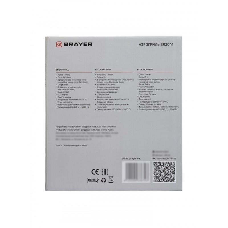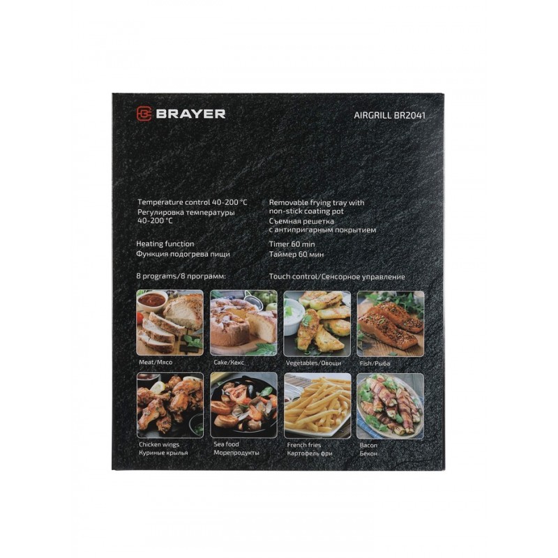 Аэрогриль BRAYER 2041BR 1500 Вт, 5 л, 8 программ, 200°С, LСD-дисплей, таймер, решетка