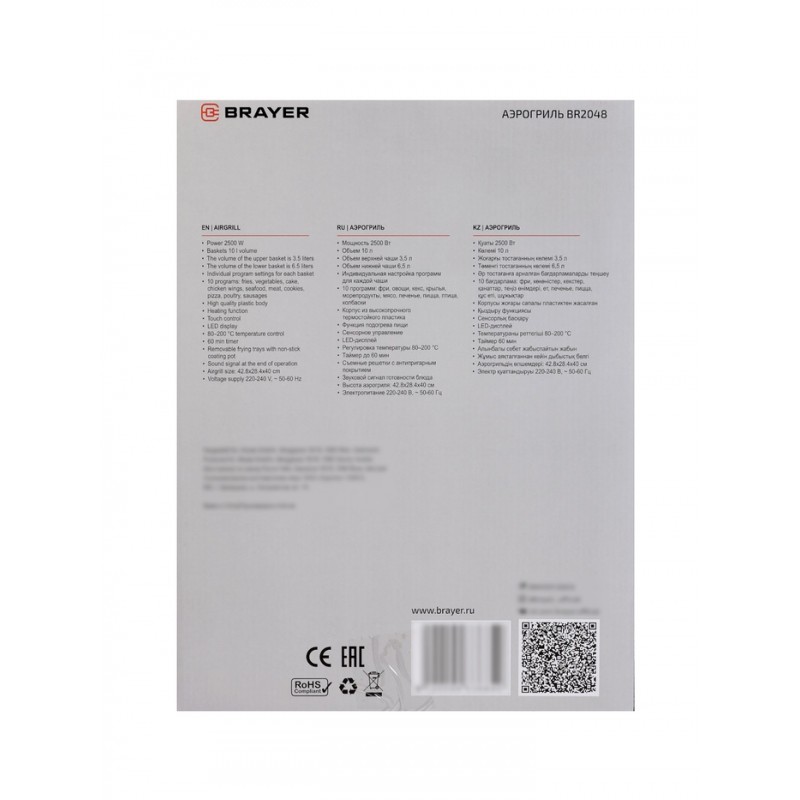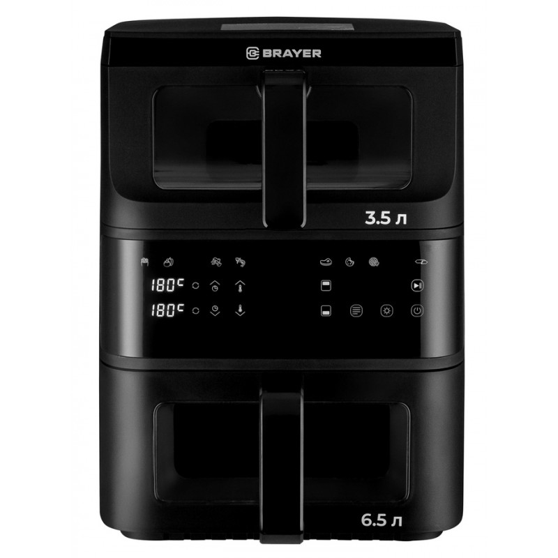Аэрогриль BRAYER 2048BR 2500 Вт, 2 чаши, 10 программ, 200°С, LED-дисплей, таймер, решётка