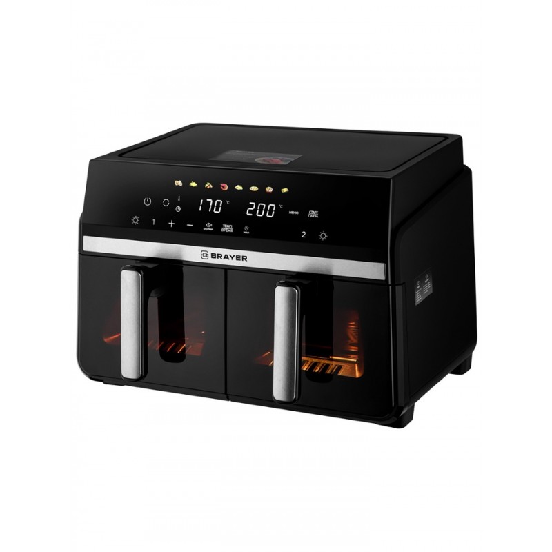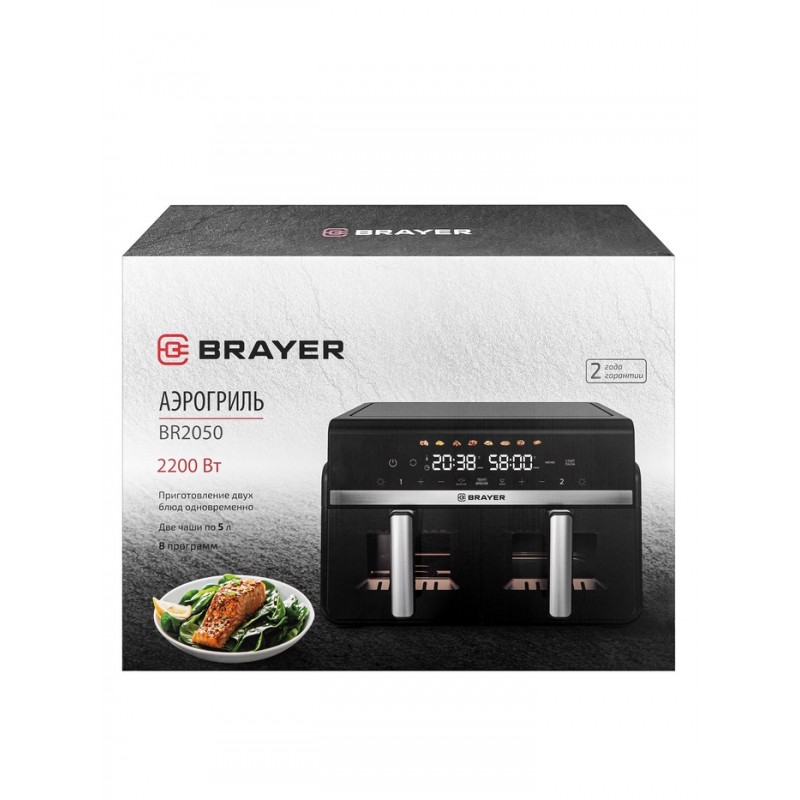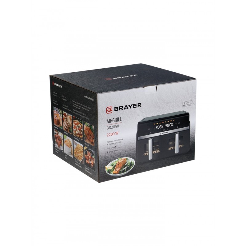Аэрогриль BRAYER BR2050 2200 Вт, 2 чаши по 5 л, 8 программ, до 200°С, LED-дисплей, таймер, решётка