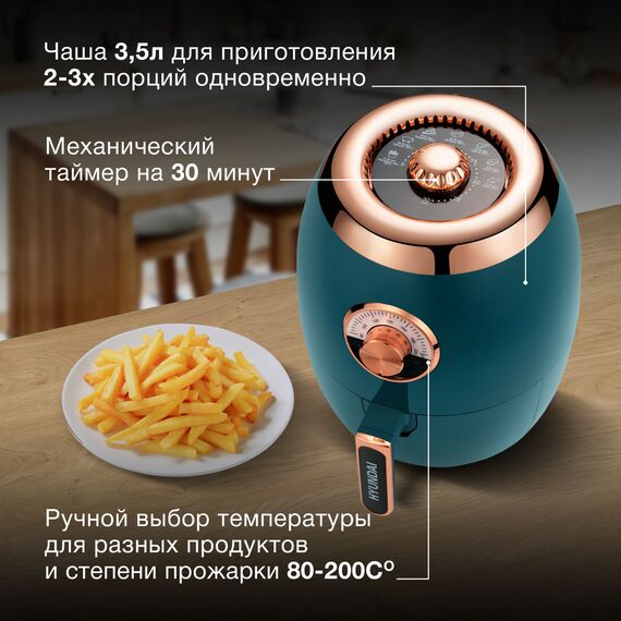 Аэрогриль Hyundai HYF-3553 1350Вт темно-зеленый/золотистый
