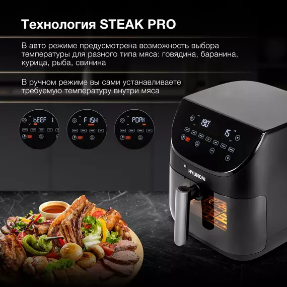 Аэрогриль Hyundai HYF-9090 1700Вт черный/черный