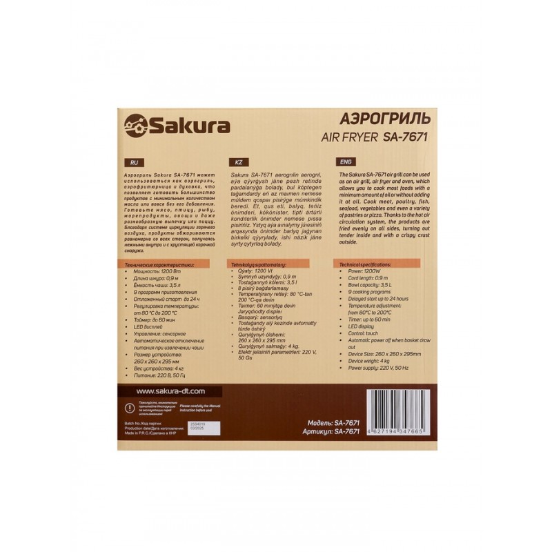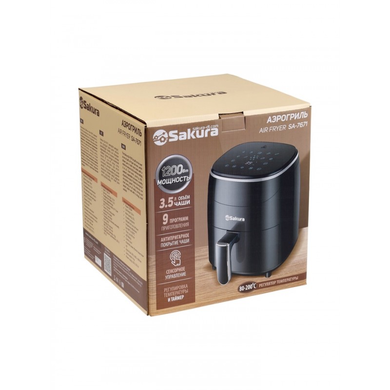 Описание Sakura SA-7671, 3.5 л, 1200 Вт, 9 программ, таймер, от 80 до 200°C, чёрный