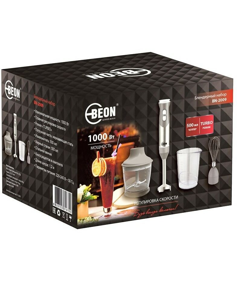 - Погружной блендер Beon BN-2009 оснащен мощным мотором и режимом "Турбо" для быстрой и эффективной обработки продуктов
