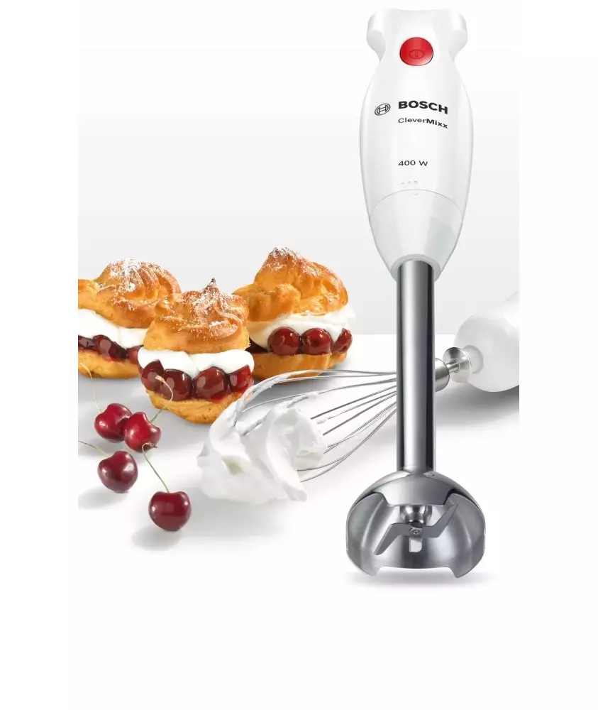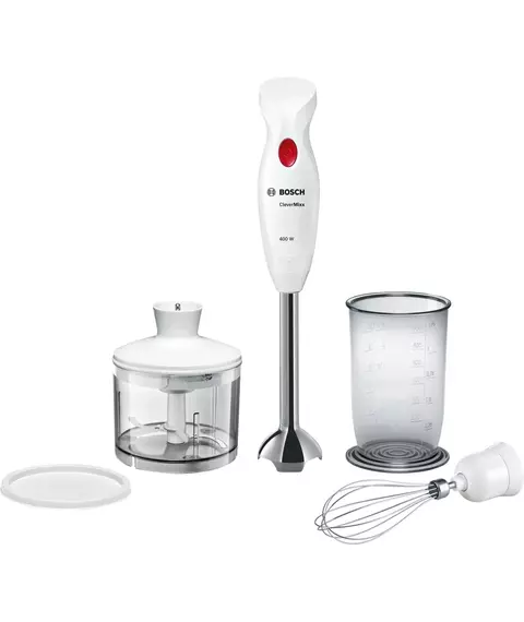 Блендер BOSCH MSM24500 погружной, мощность 400 Вт, мельничка, венчик для взбивания, цвет белый