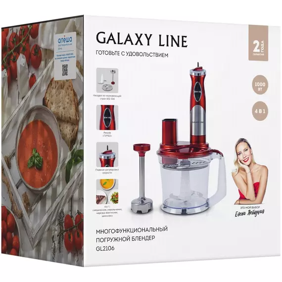 Блендер погружной Galaxy Line GL 2106 1000Вт красный/серебристый [7020521060]