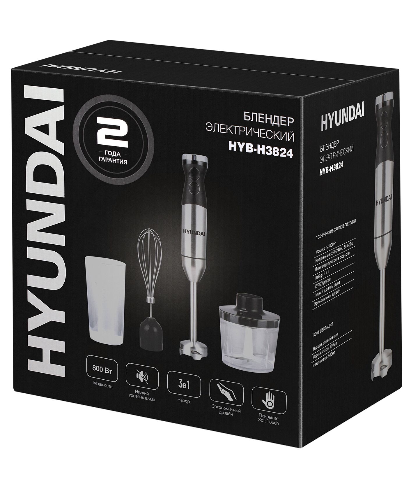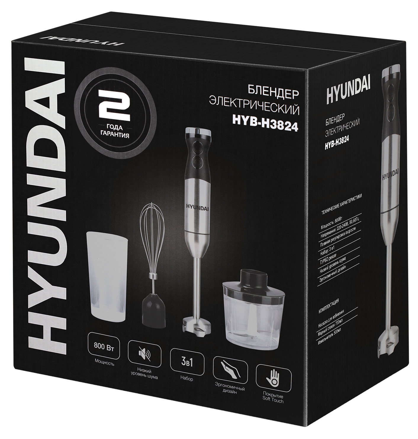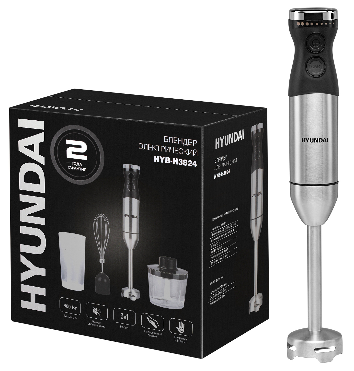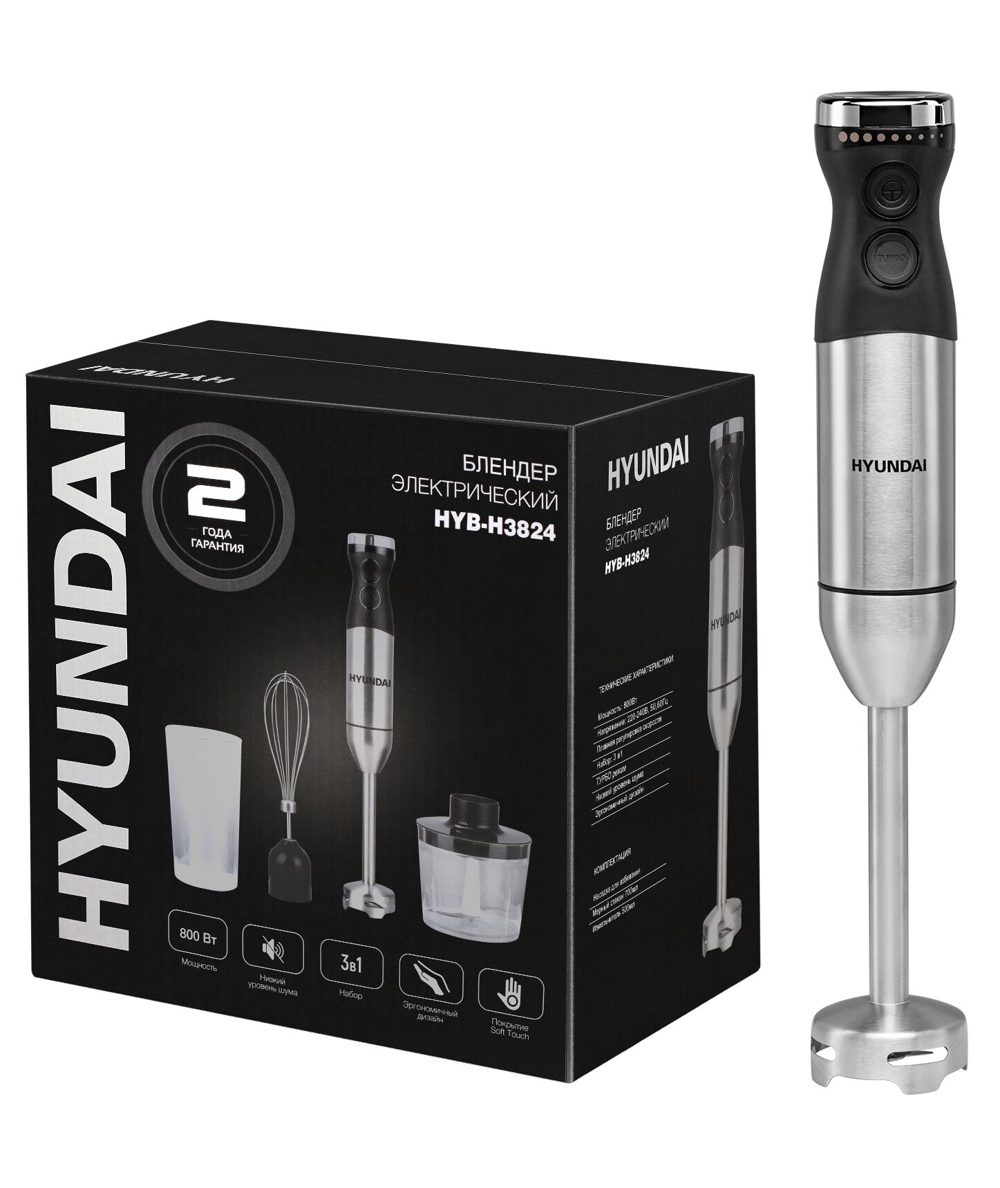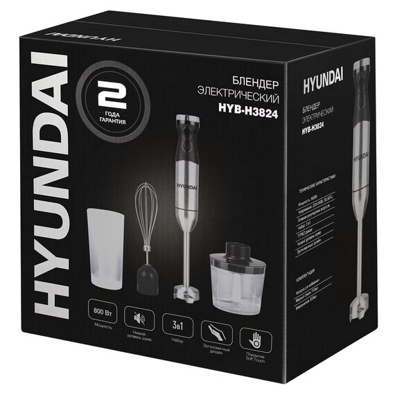 Блендер погружной Hyundai HYB-H3824 800Вт серебристый/черный