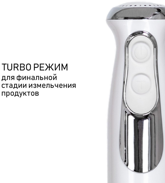 - Насадки: съемная насадка-блендер из нержавеющей стали, съемная насадка-венчик из нержавеющей стали