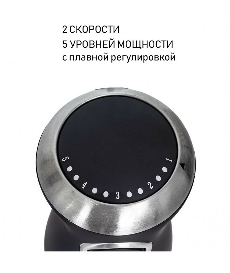 - Модель оснащена 5 уровнями мощности c плавной регулировкой, 2 скоростями и режимом Турбо