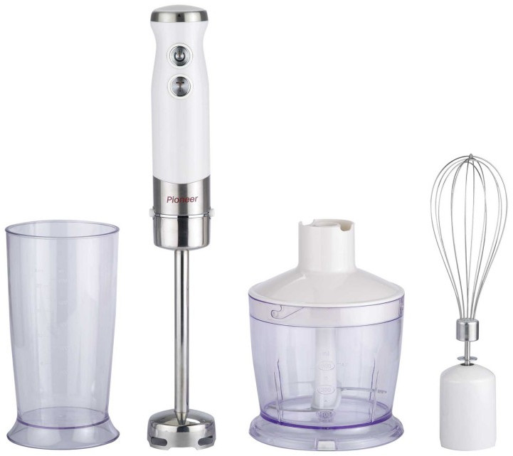- Блендер, измельчитель, мерный стакан, насадка-венчик для взбивания, гарантийный талон, инструкция на русском языке