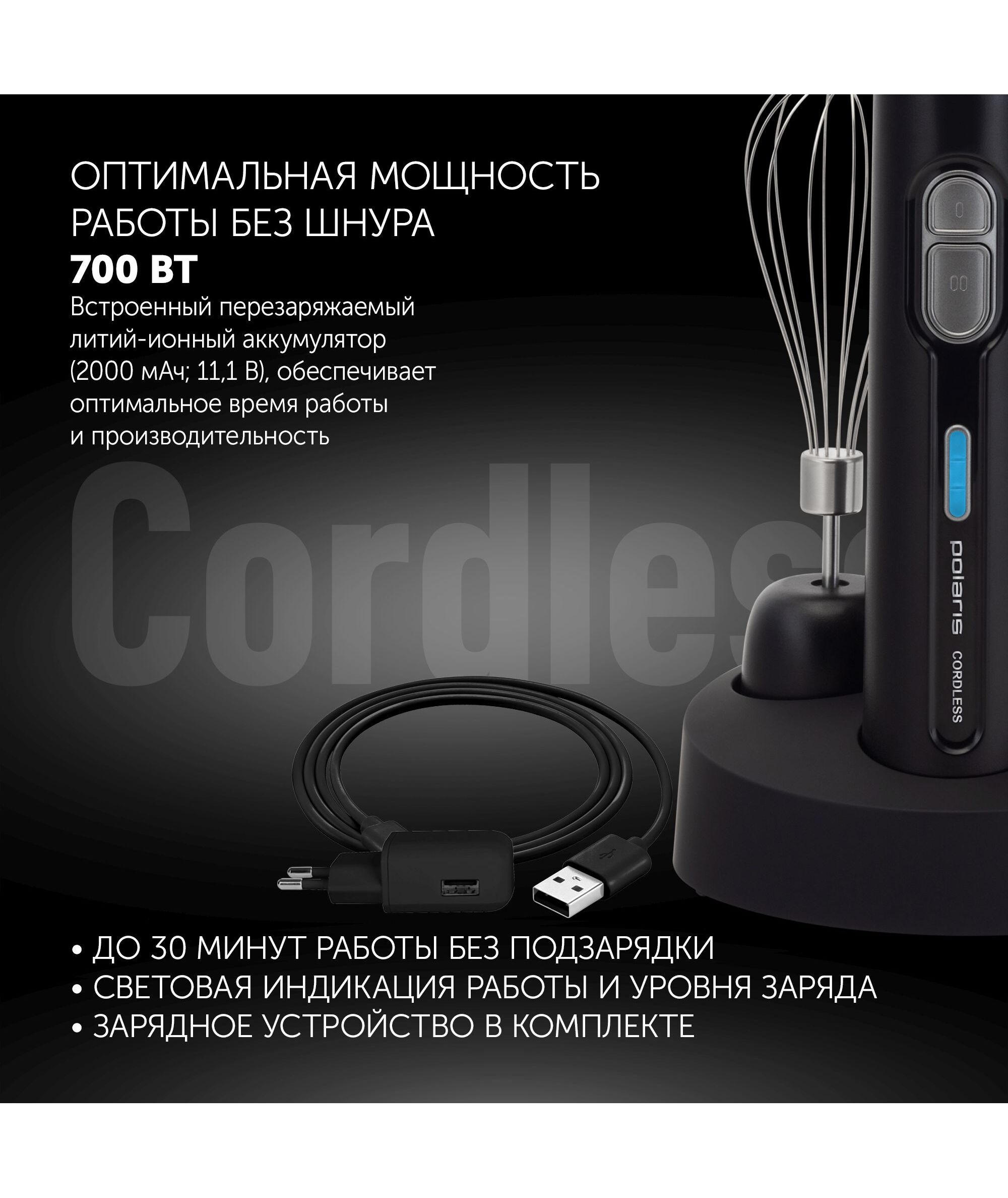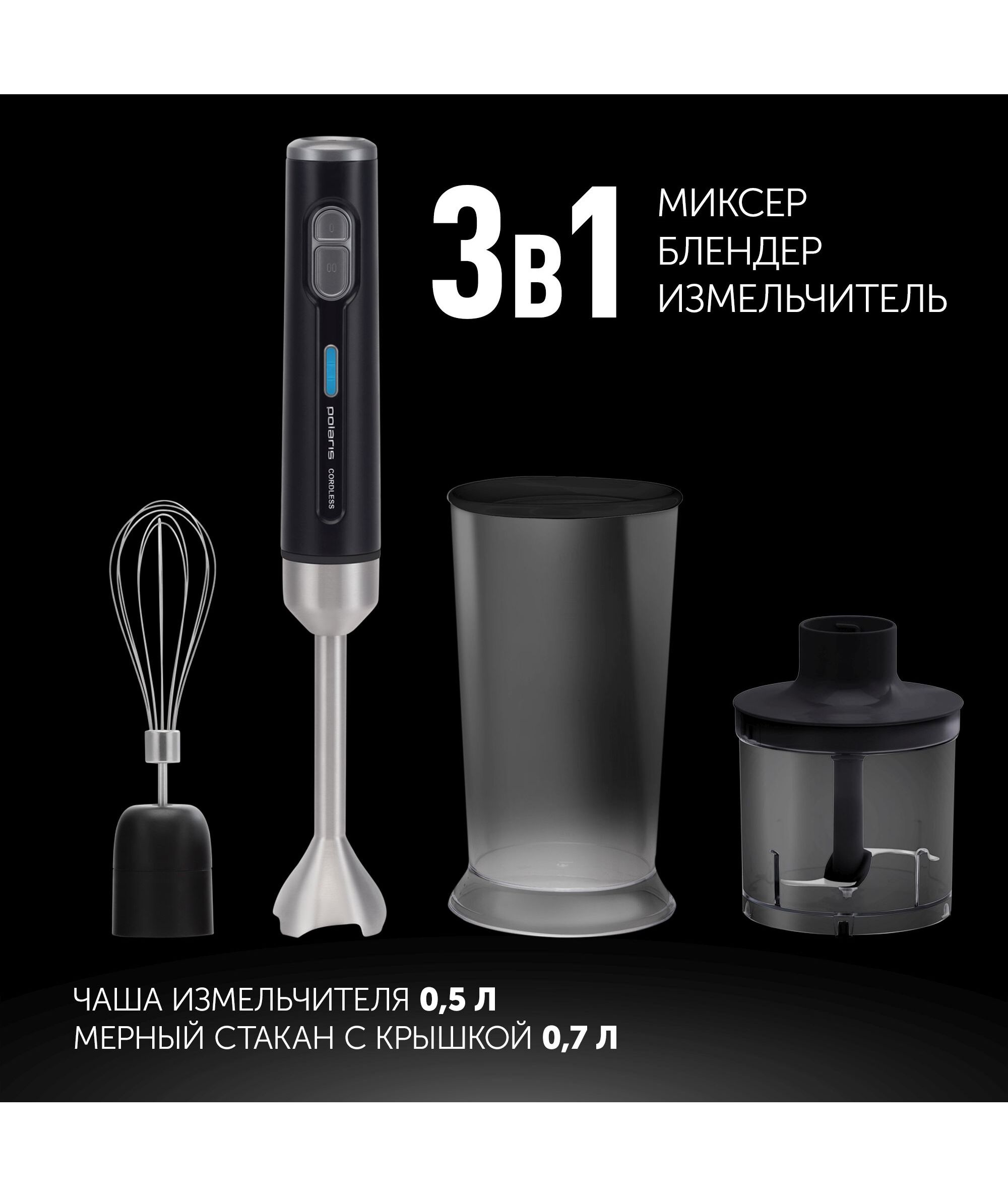 Блендер погружной Polaris PHB 0746 CordLess 700Вт черный