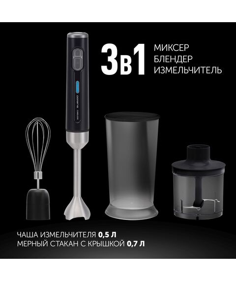 | Особенности | До 30 минут автономной работы. Время зарядки аккумулятора 5 часов. Чаща для измельчения 0,5 литра. Мерный стакан с крышкой объемом 0,7 литра. Аккумулятор: Li-ion 2000 мАч, 11,1 В. |