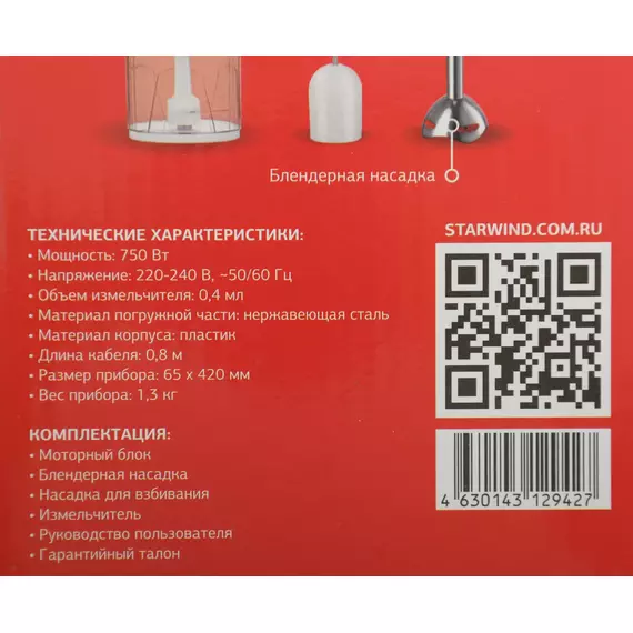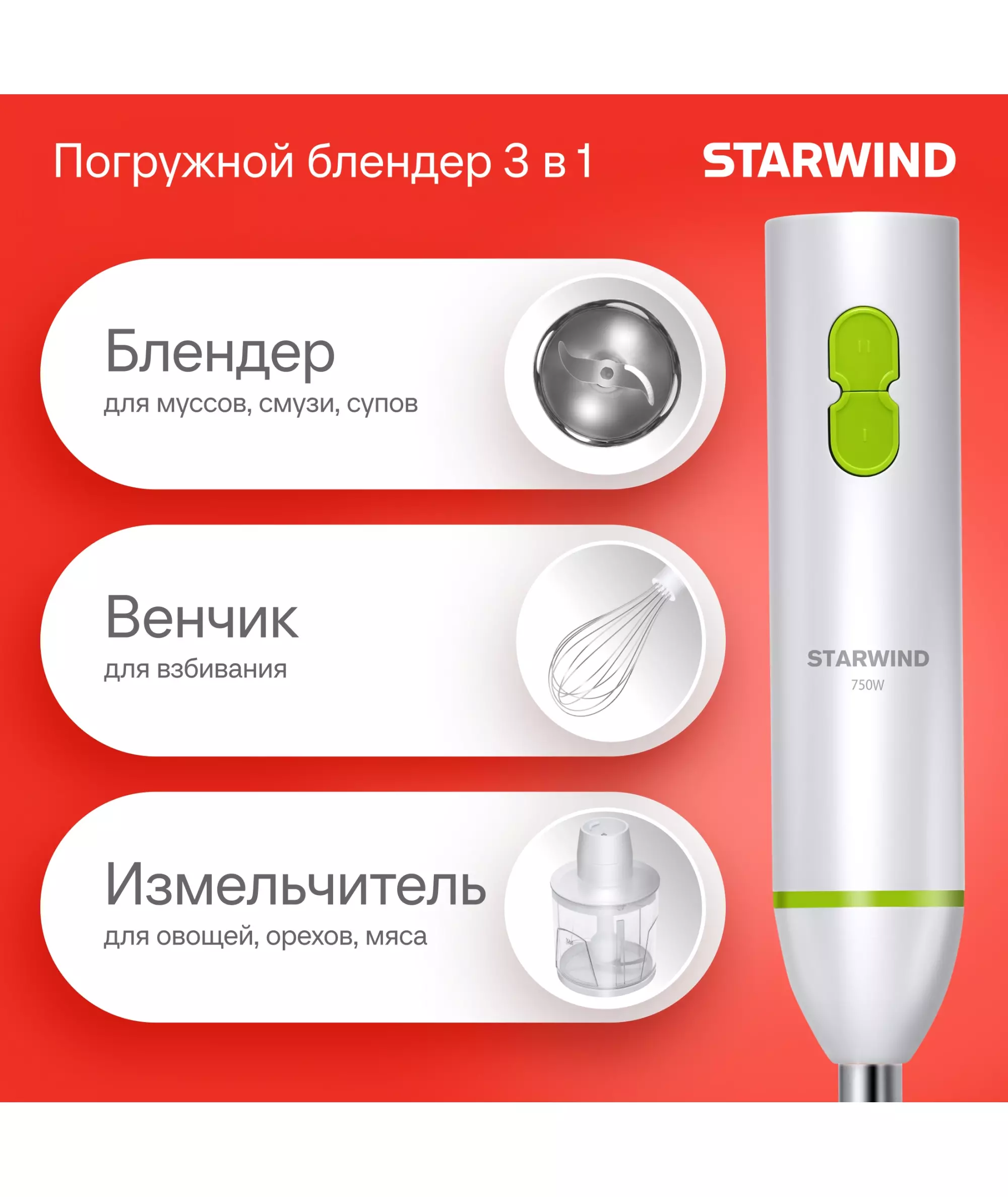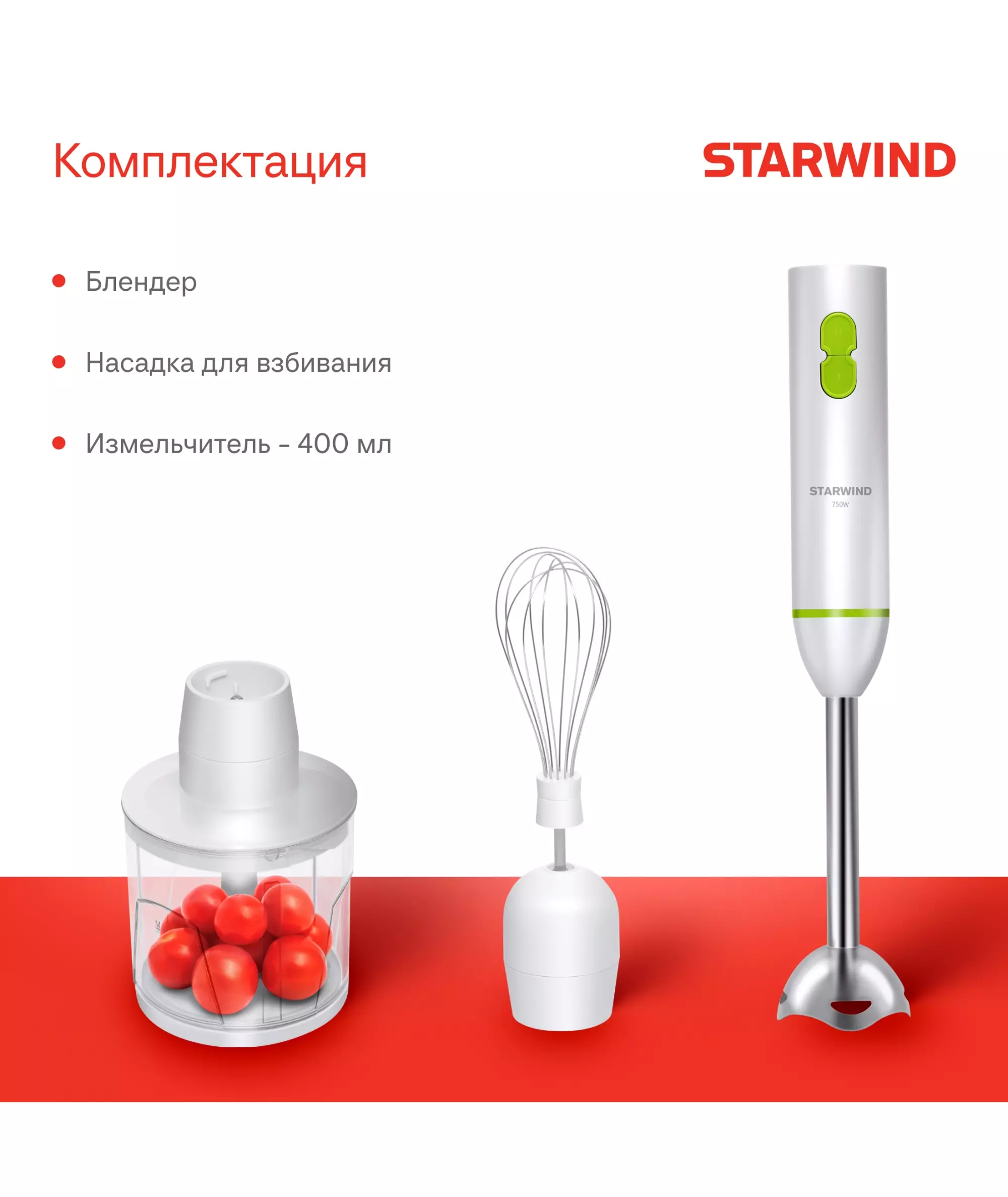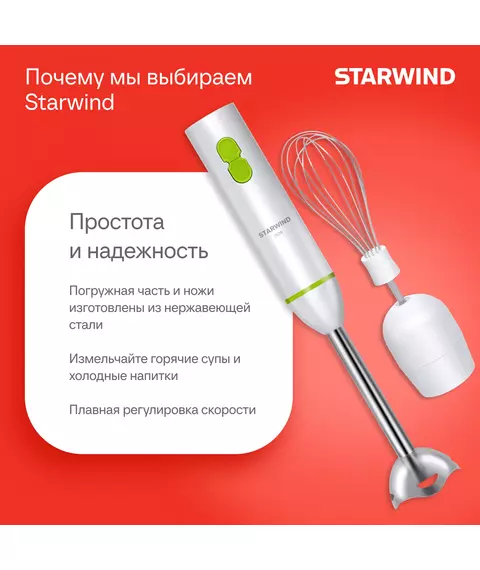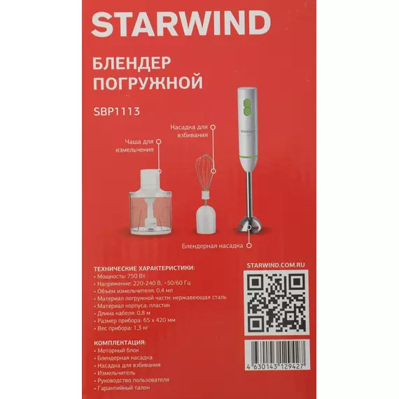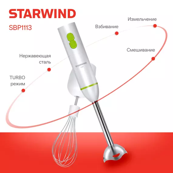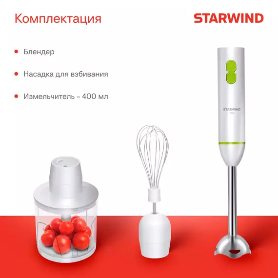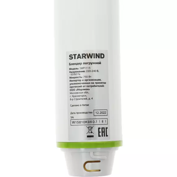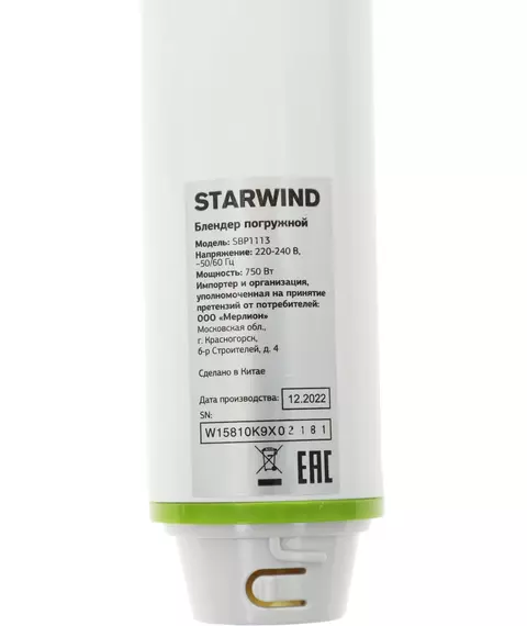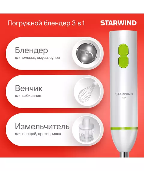 Блендер STARWIND SBP1113 погружной 750Вт белый/зеленый