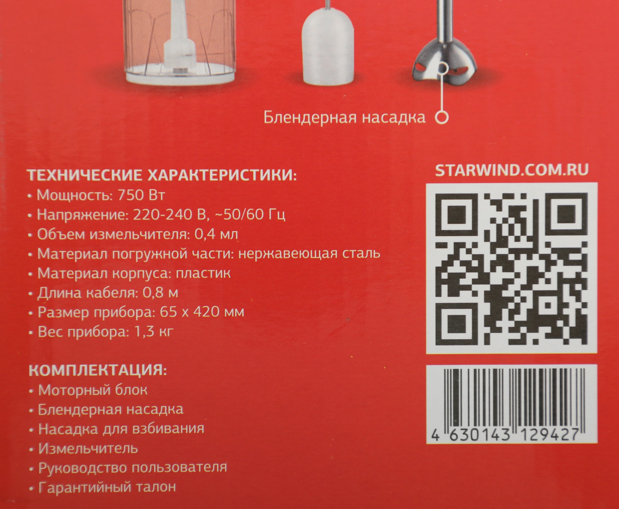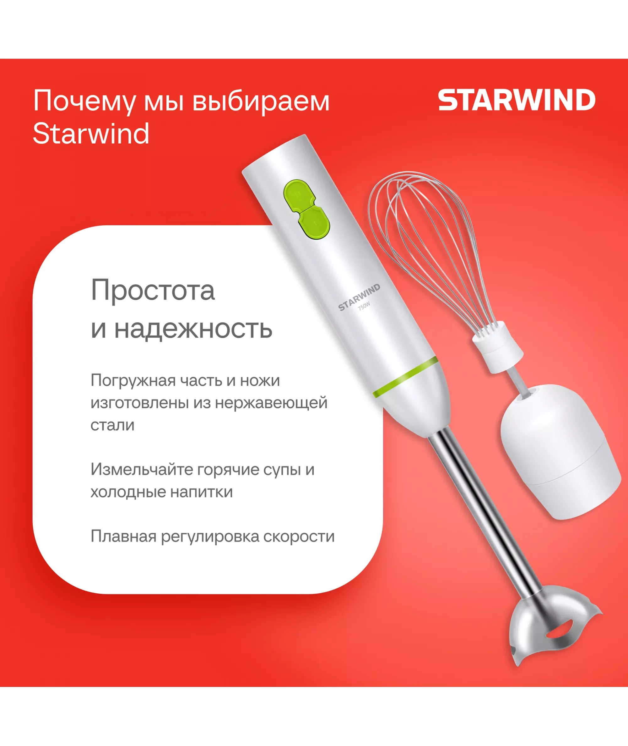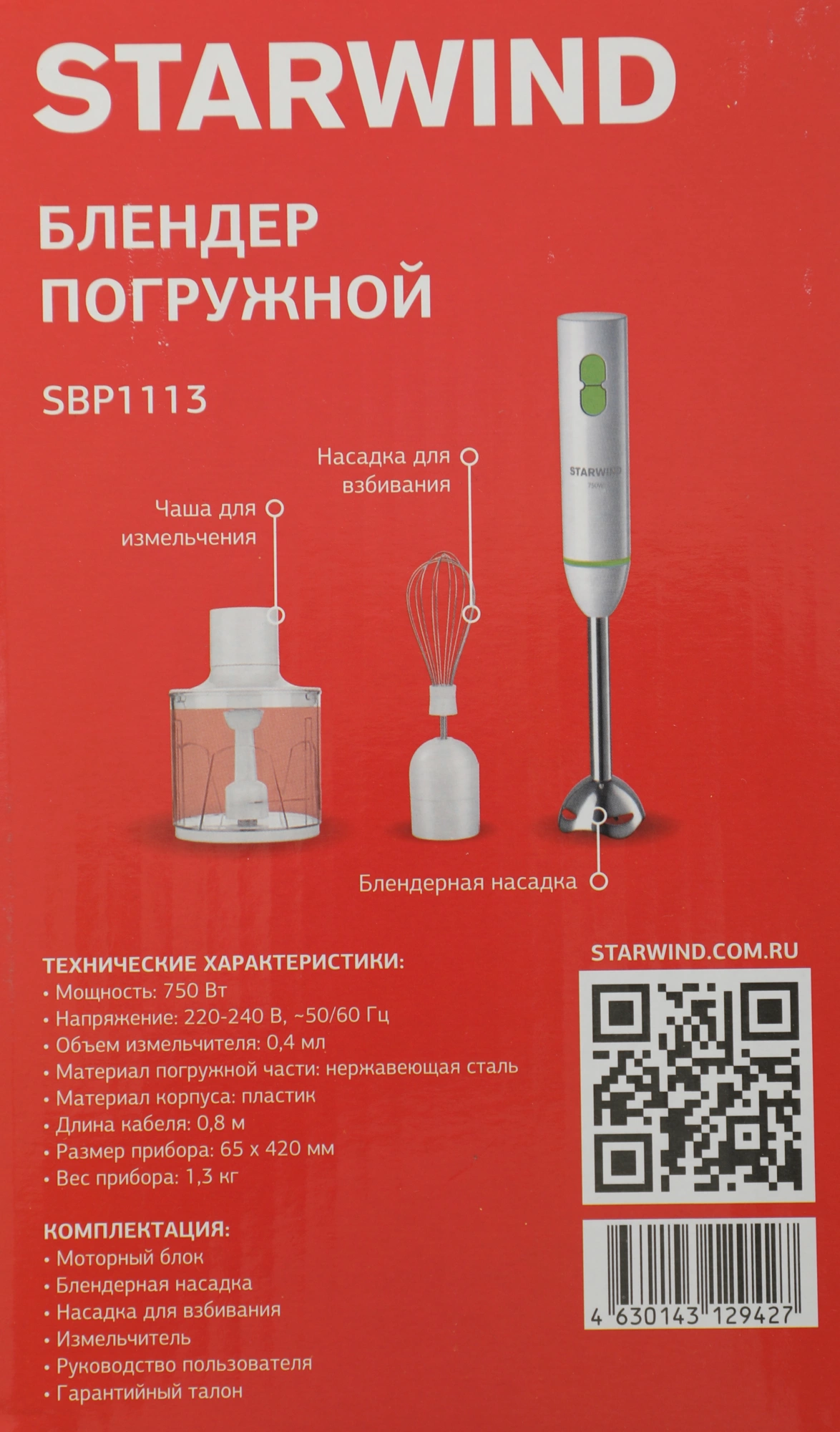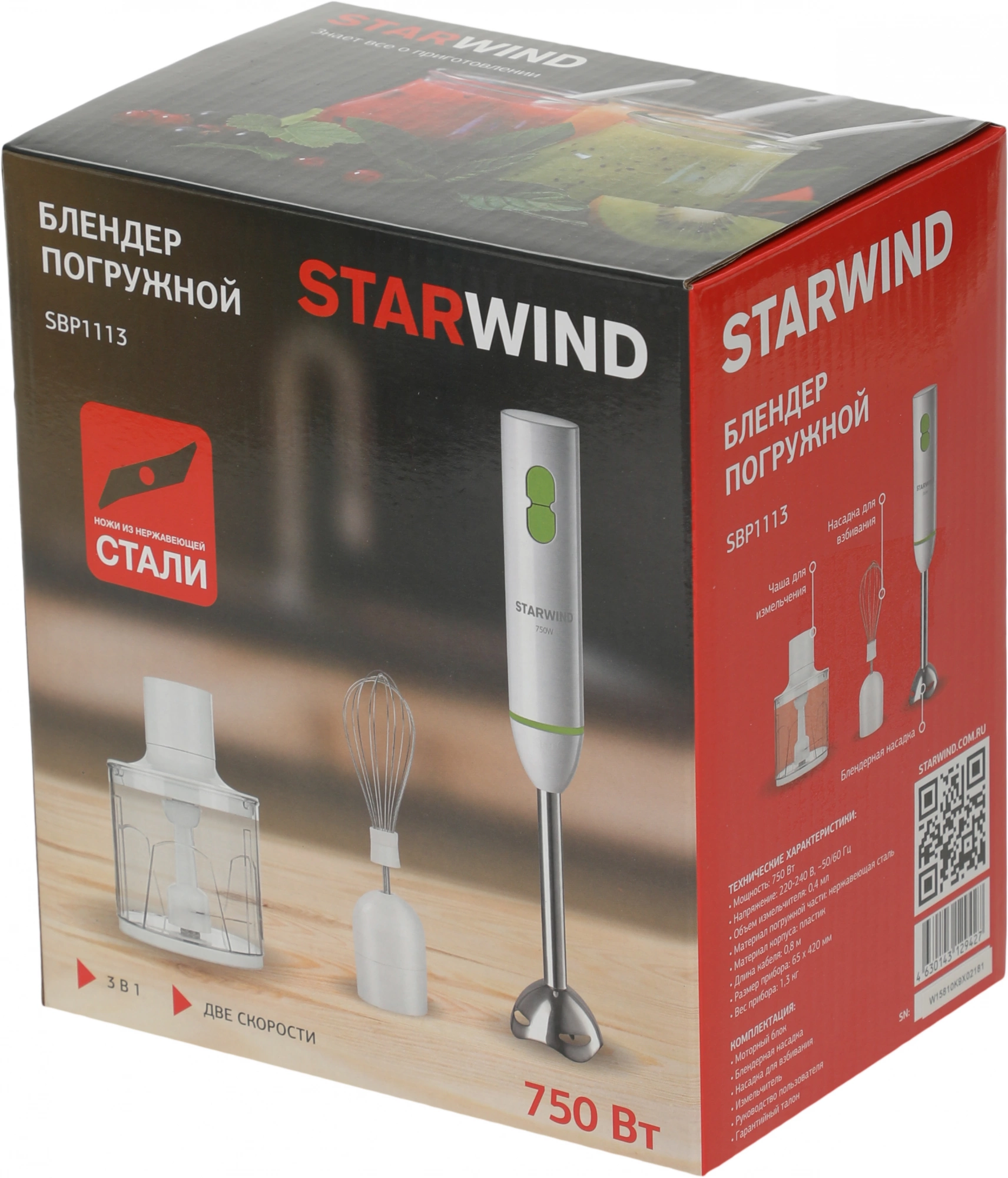 Блендер STARWIND SBP1113 погружной 750Вт белый/зеленый