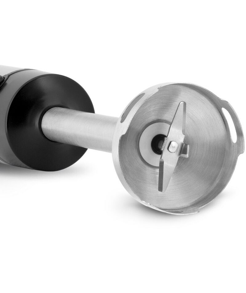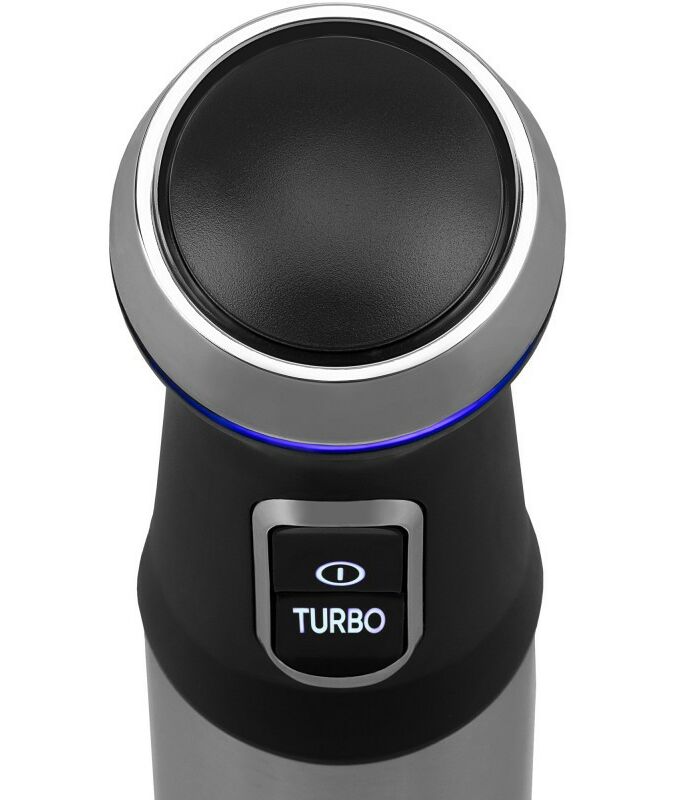 - Прибор обладает отличной работоспособностью (максимальная мощность — 1250 Вт) и надежностью: его погружная часть и лезвия выполнены из высококачественной нержавеющей стали