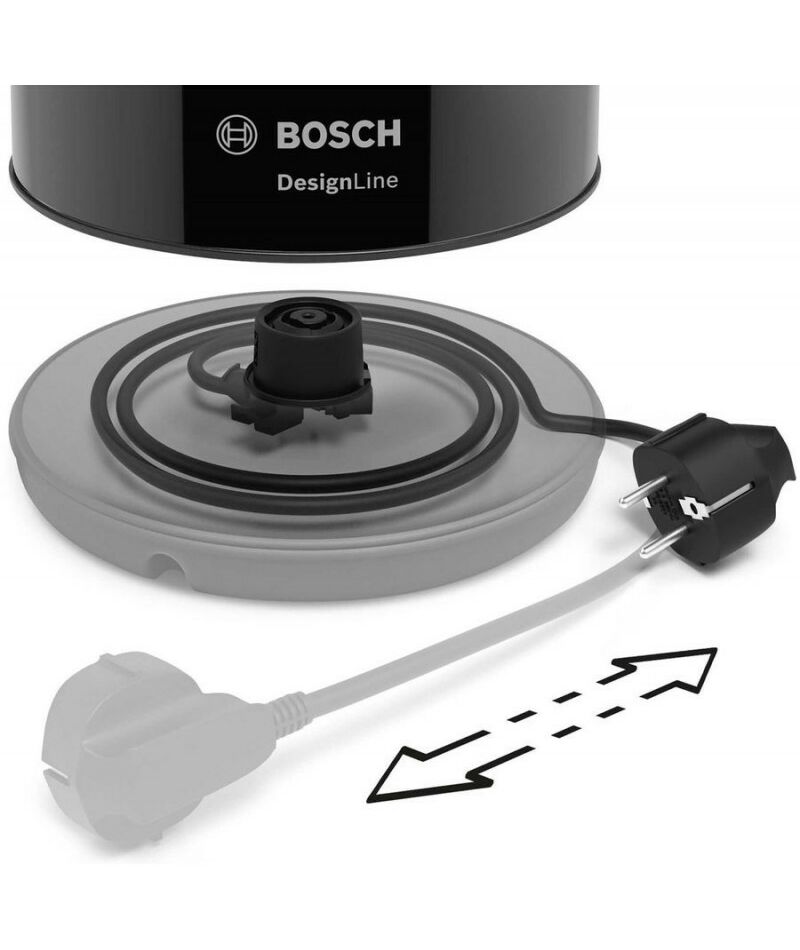 Чайник BOSCH TWK3P423 2400 Вт, 1.7 л, DesignLine, нержавеющая сталь, цвет черный, скрытый нагревательный элемент, фильтр от накипи