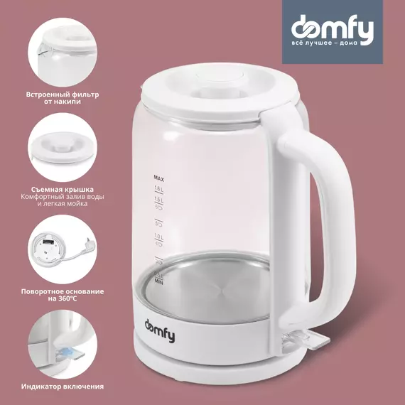 Электрочайник DOMFY DSB-EK304 понравится тем, кто ценит в бытовой технике прежде всего надежность и удобство использования. Ключевыми достоинствами модели являются прочный корпус из боросиликатного стекла и надежный британский контроллер от Strix, которые обеспечат чайнику продолжительный срок службы.
