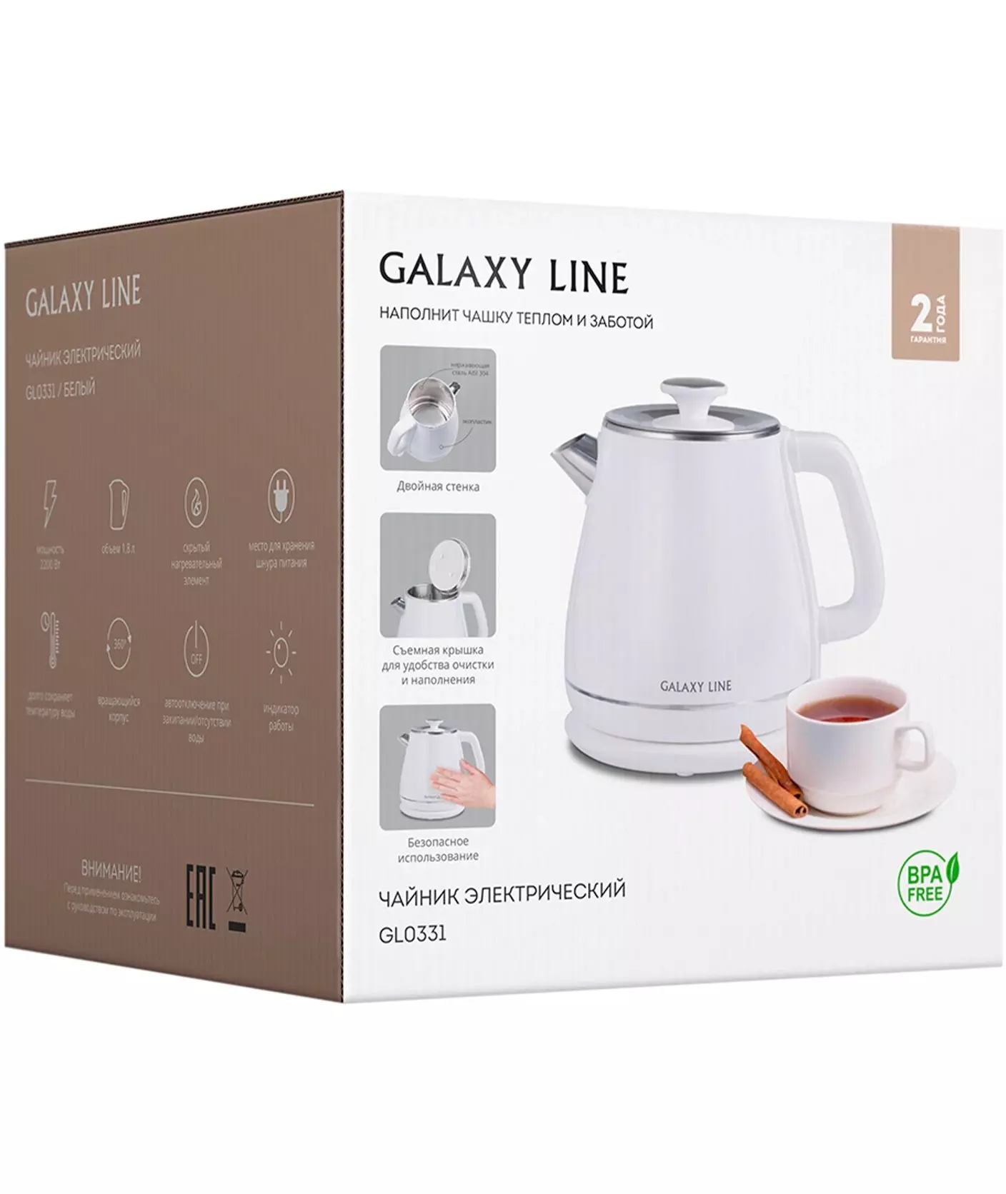 Чайник Galaxy Line GL0331 1.8л. 2200Вт белый корпус: пластик