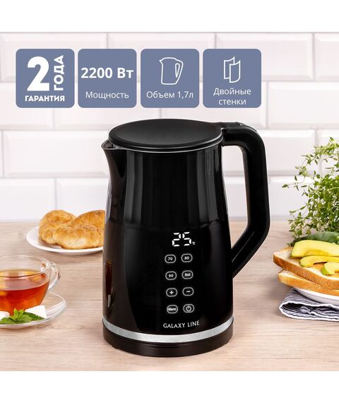 Чайник Galaxy Line GL0337 1.7л. 2200Вт черный корпус: металл/пластик