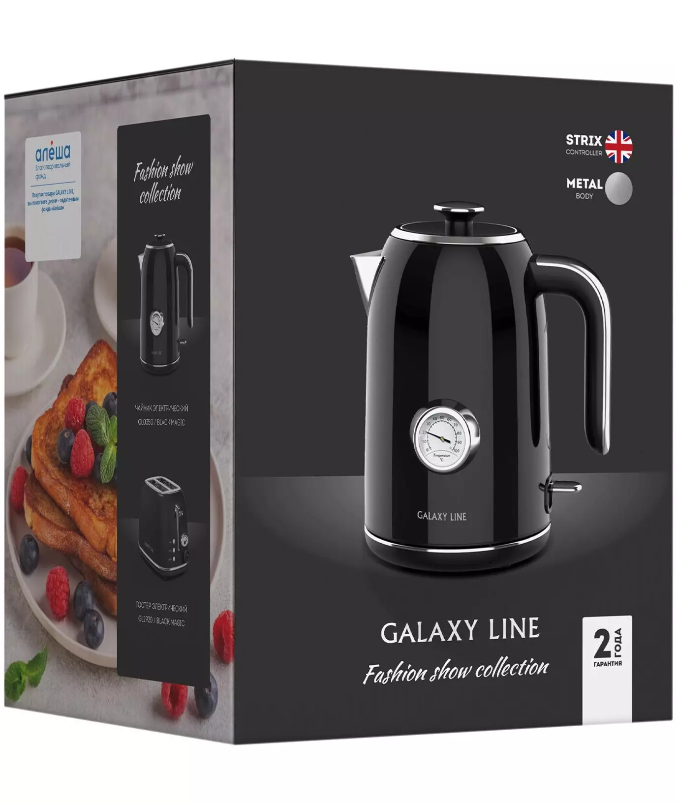 Чайник Galaxy Line GL0350 1.7л. 2200Вт черный корпус: нерж.сталь