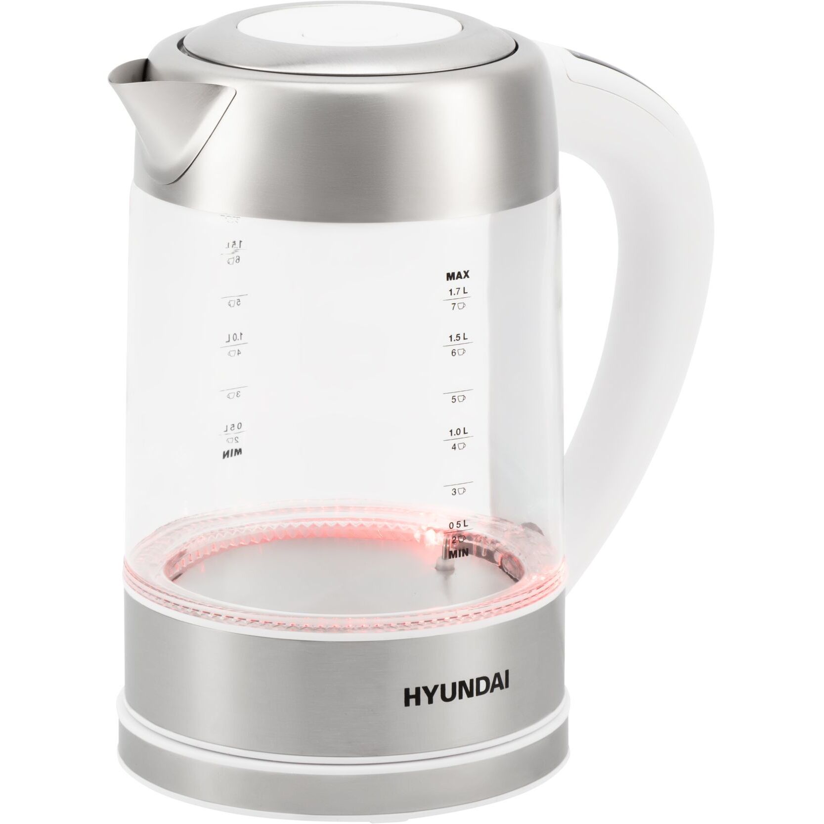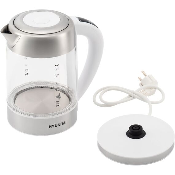 Описание Hyundai электрический 1.7л. 2200Вт белый/серебристый корпус: стекло/металл [HYK-S5807]