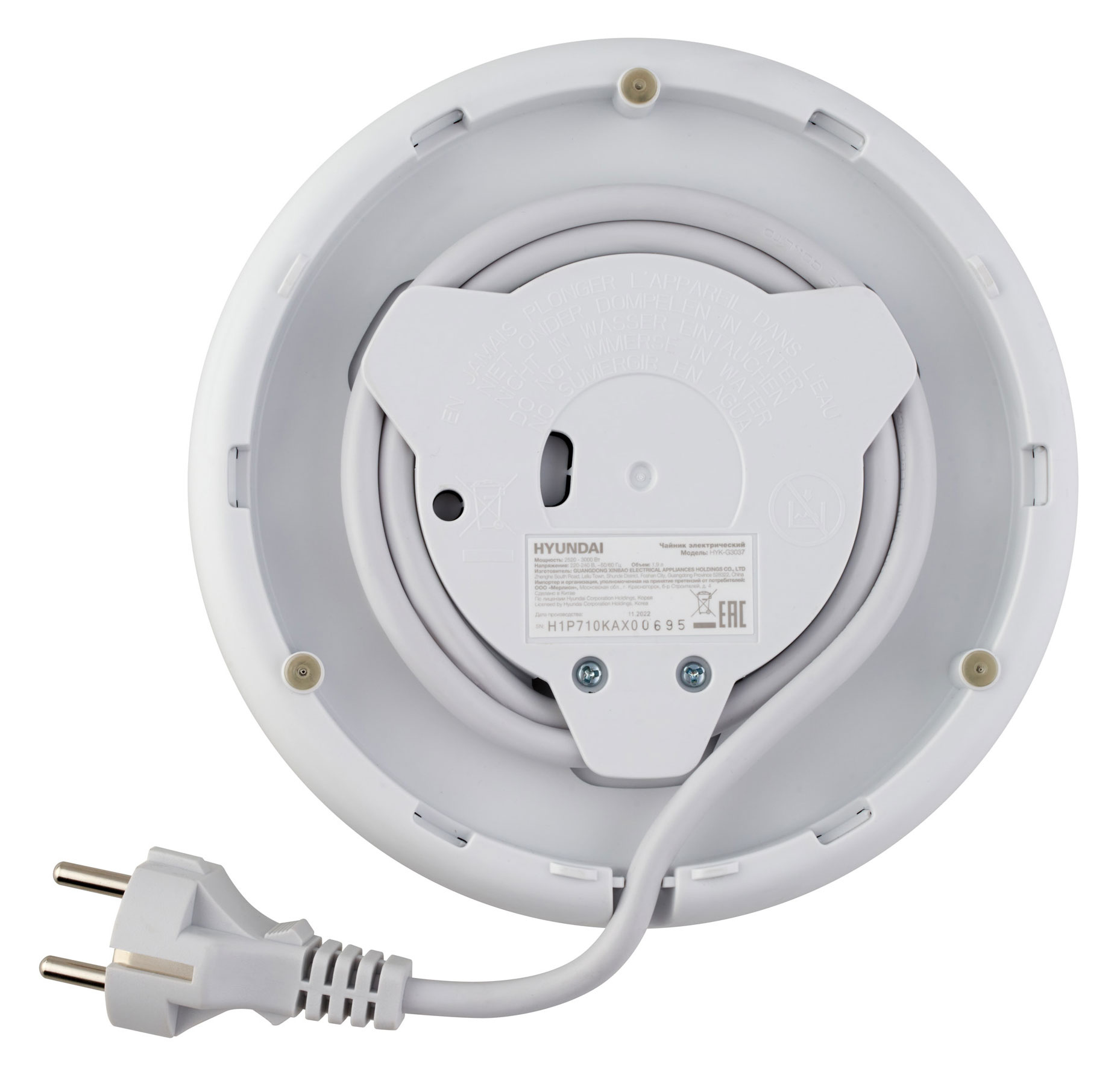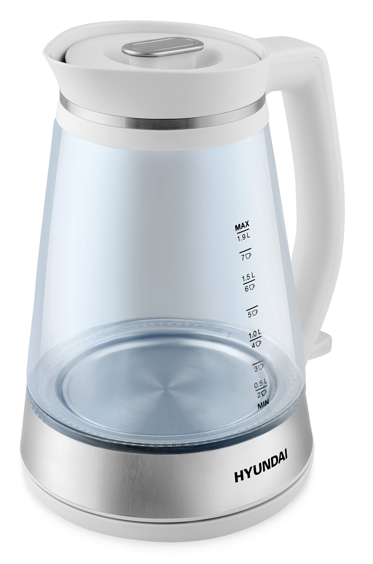 Чайник электрический Hyundai HYK-G3037 1.9л. 3000Вт белый/прозрачный корпус: стекло/пластик