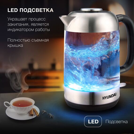 Чайник электрический Hyundai HYK-G4034 1.8л. 2200Вт черный/прозрачный корпус: стекло/пластик