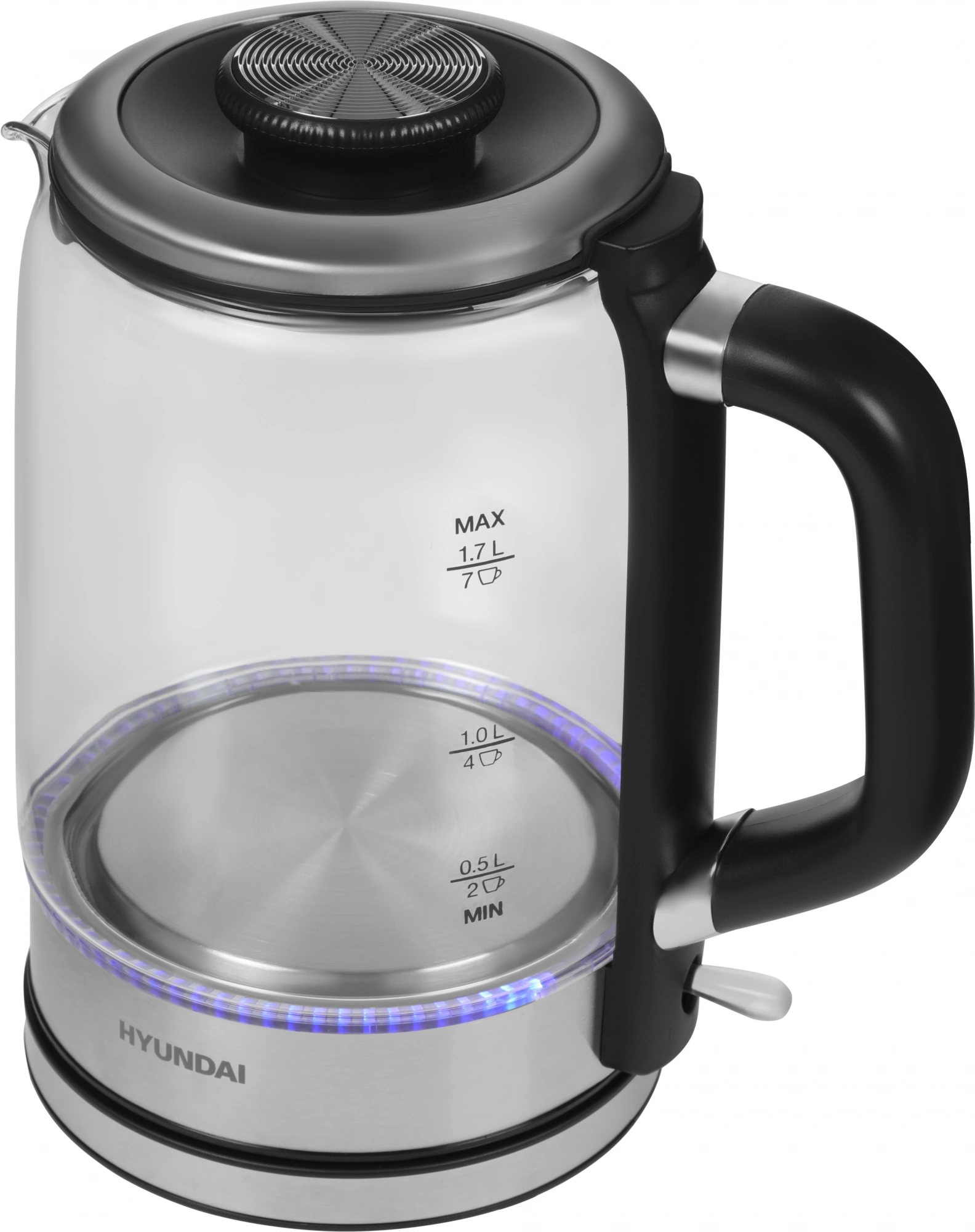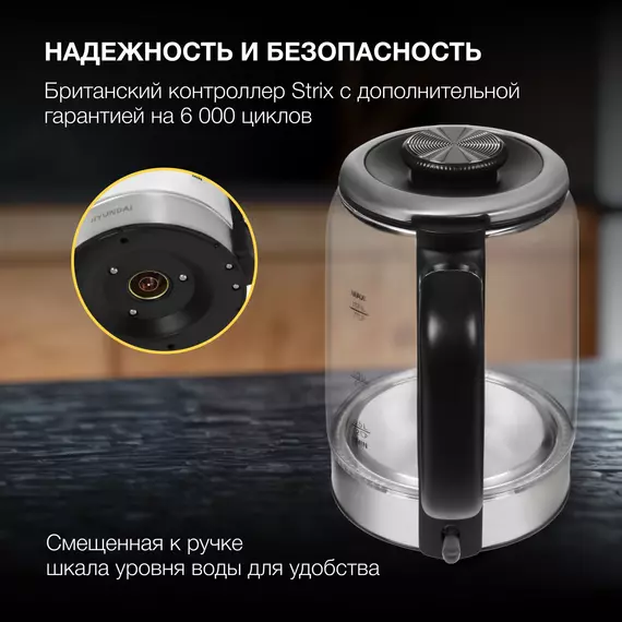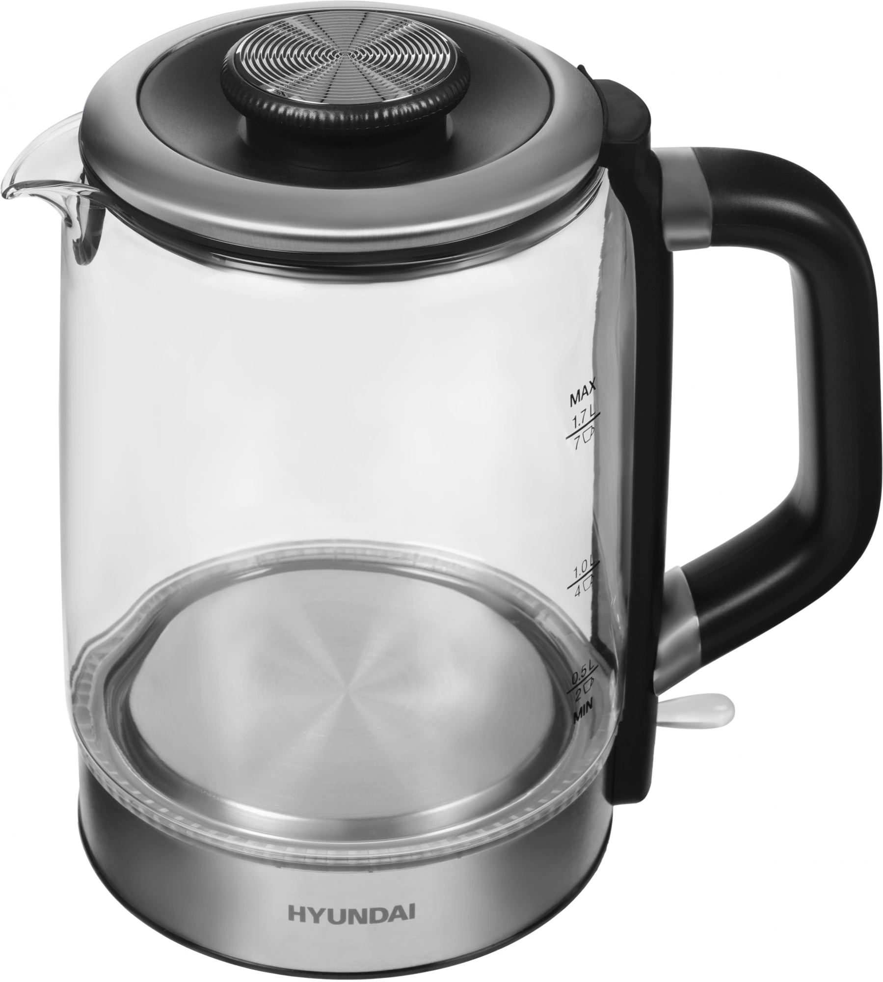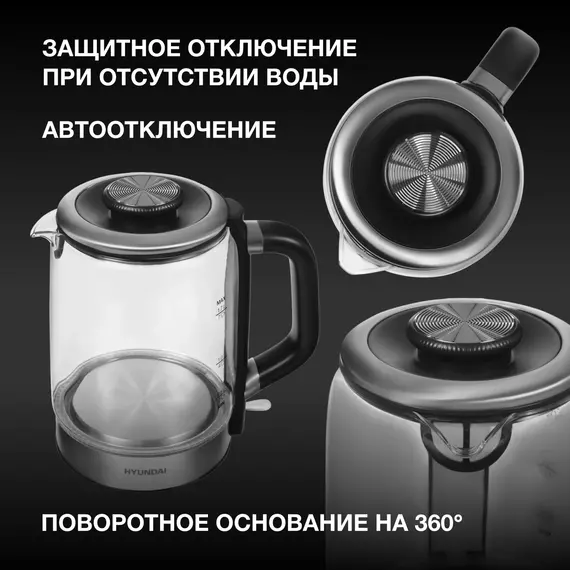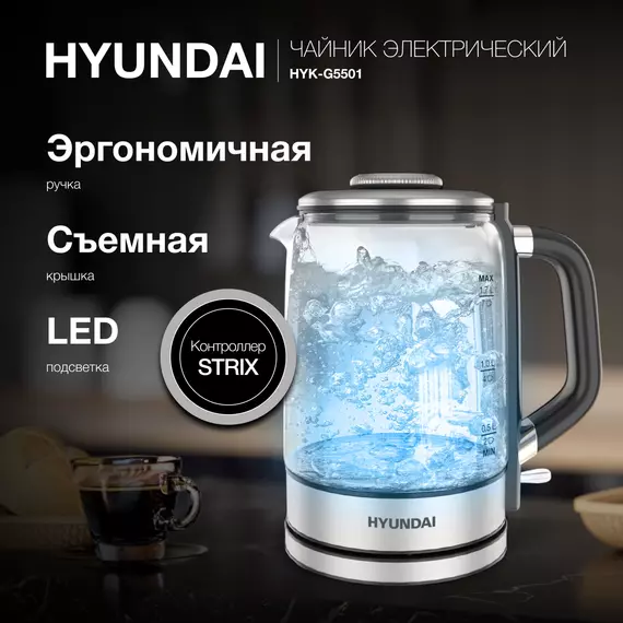 Чайник электрический Hyundai HYK-G5501 1.7л. 2200Вт серебристый/черный корпус: стекло