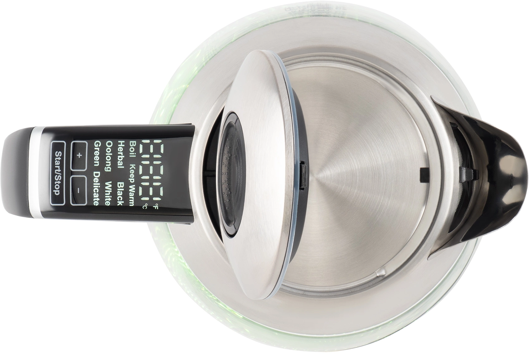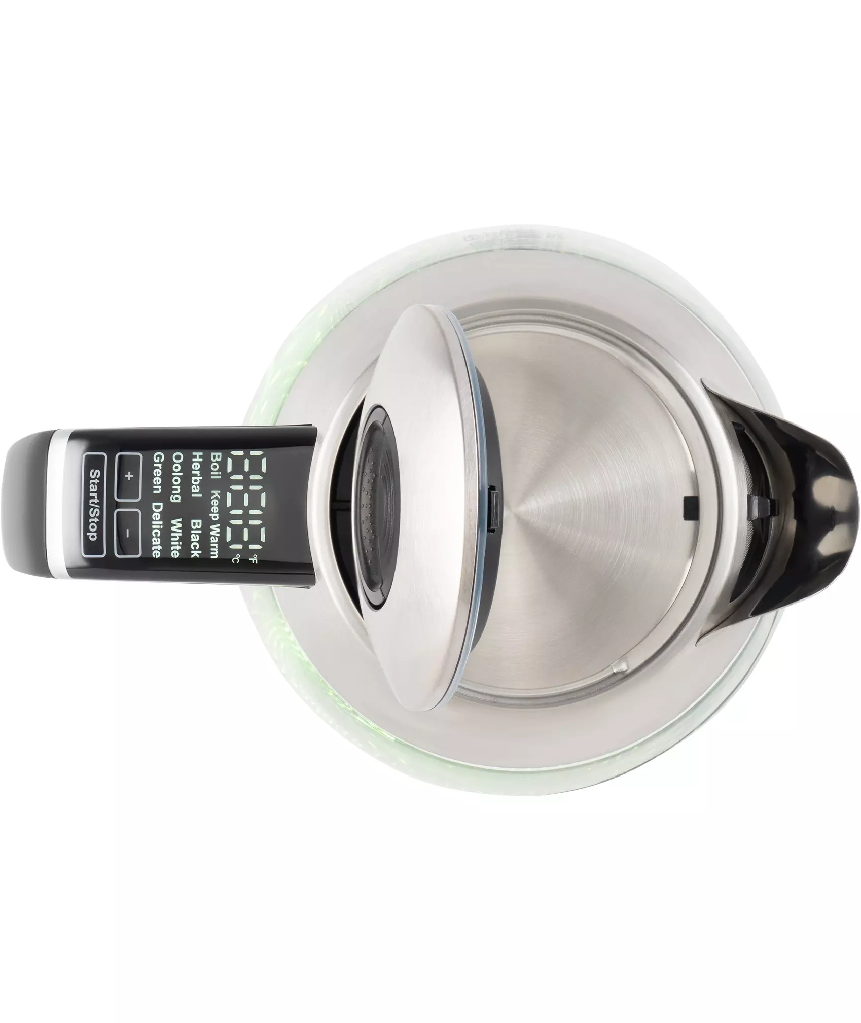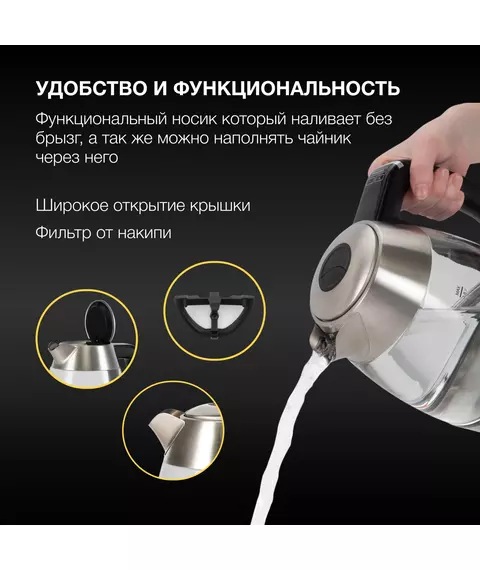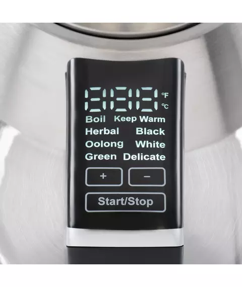 | Особенности | Информационный дисплей, сенсорное управление установками температуры 40-100С и функцией поддержания, для любых напитков и бытовых нужд. Широкий носик и фильтр от накипи. |