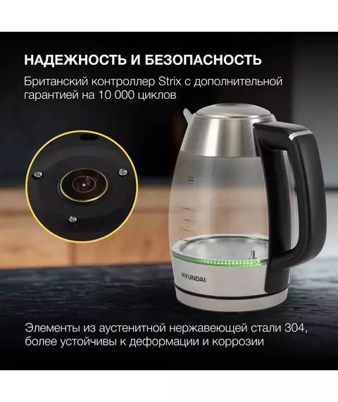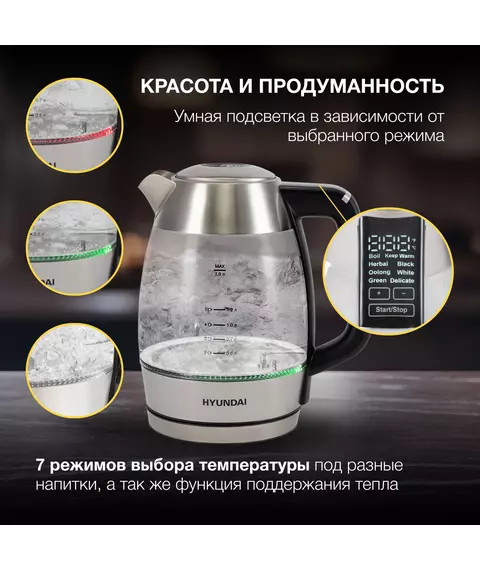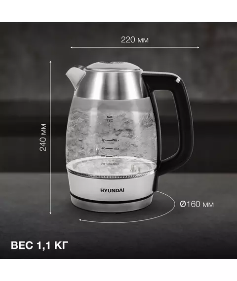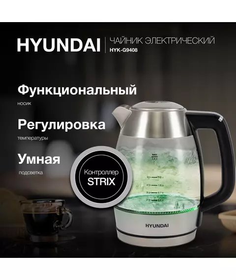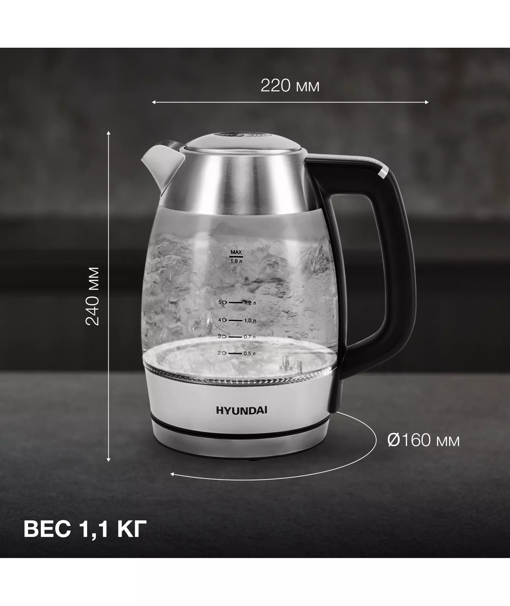 Чайник электрический Hyundai HYK-G9408 1.9л. 2200Вт черный/серебристый корпус: стекло