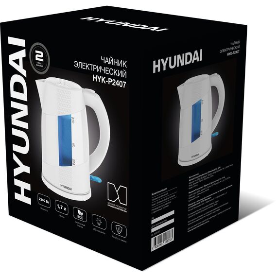 Чайник электрический Hyundai HYK-P2407 1.7л, 2200Вт, белый/голубой, пластик