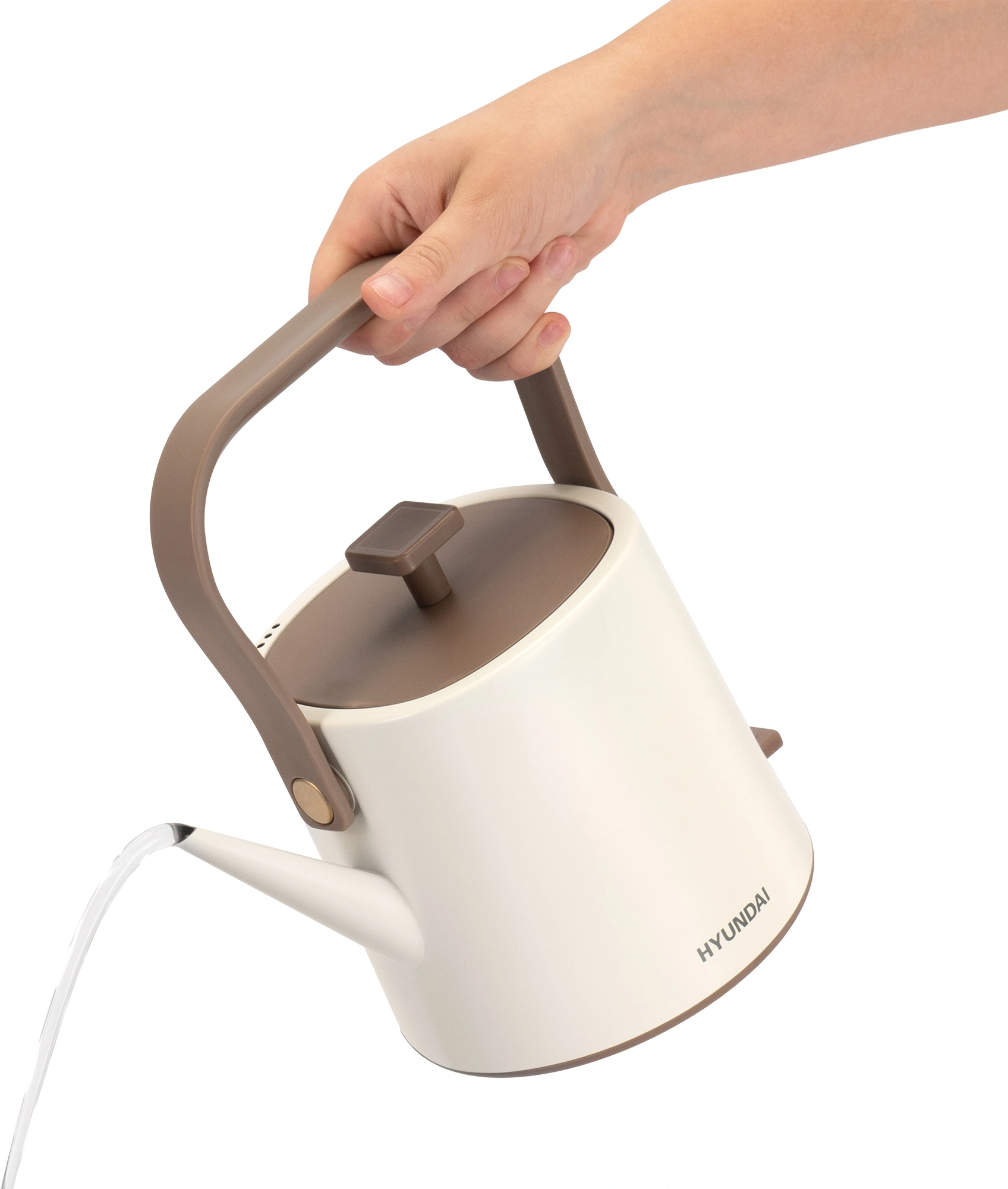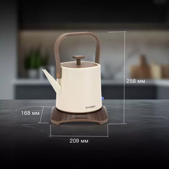 Чайник электрический Hyundai HYK-S2043 0.6л. 1000Вт кремовый/коричневый корпус: металл