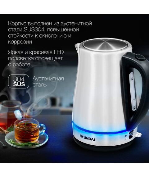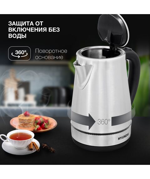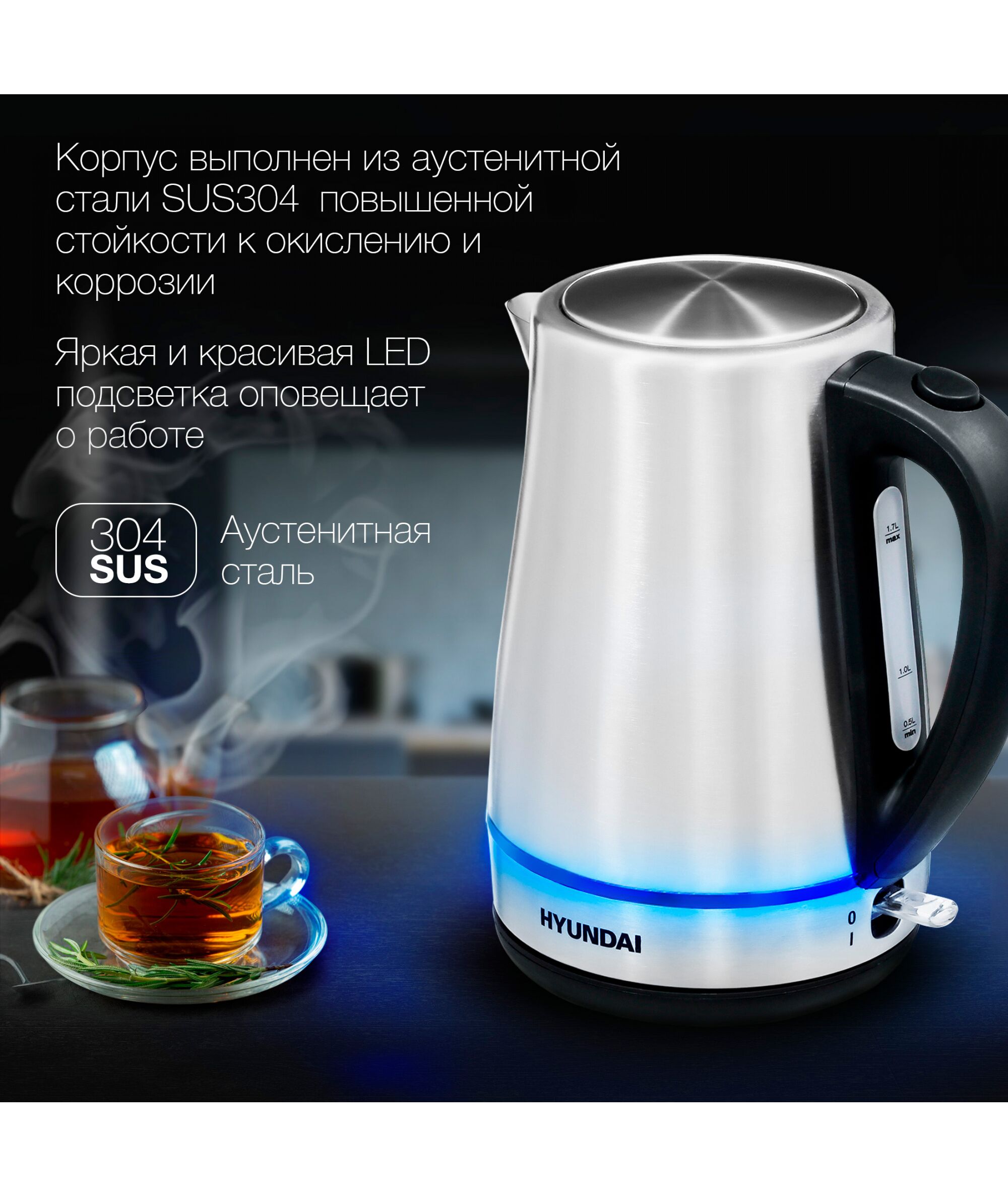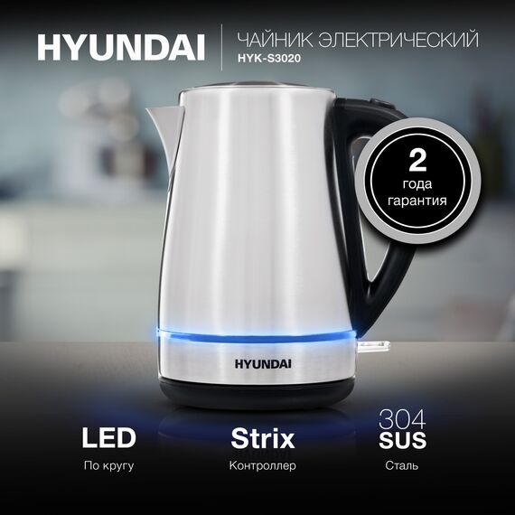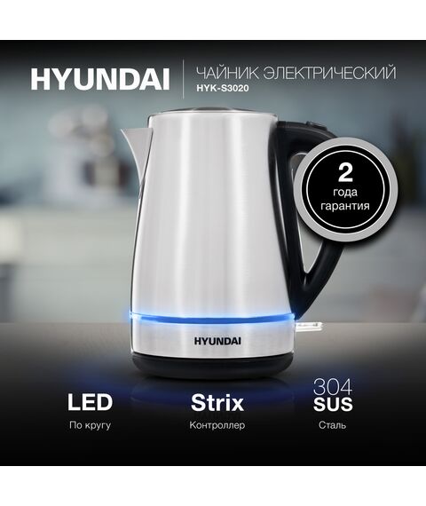 Чайник Hyundai HYK-S3020 1.7л. 2200Вт серебристый матовый/черный корпус: металл/пластик