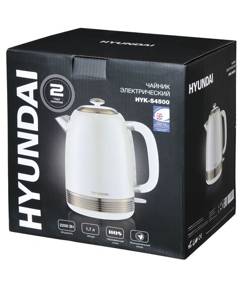Чайник Hyundai HYK-S4500 1.7л. 2200Вт жемчужный/золотистый корпус: металл/пластик
