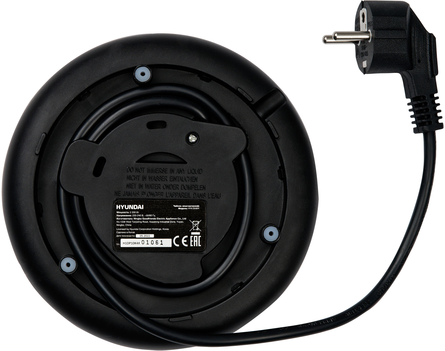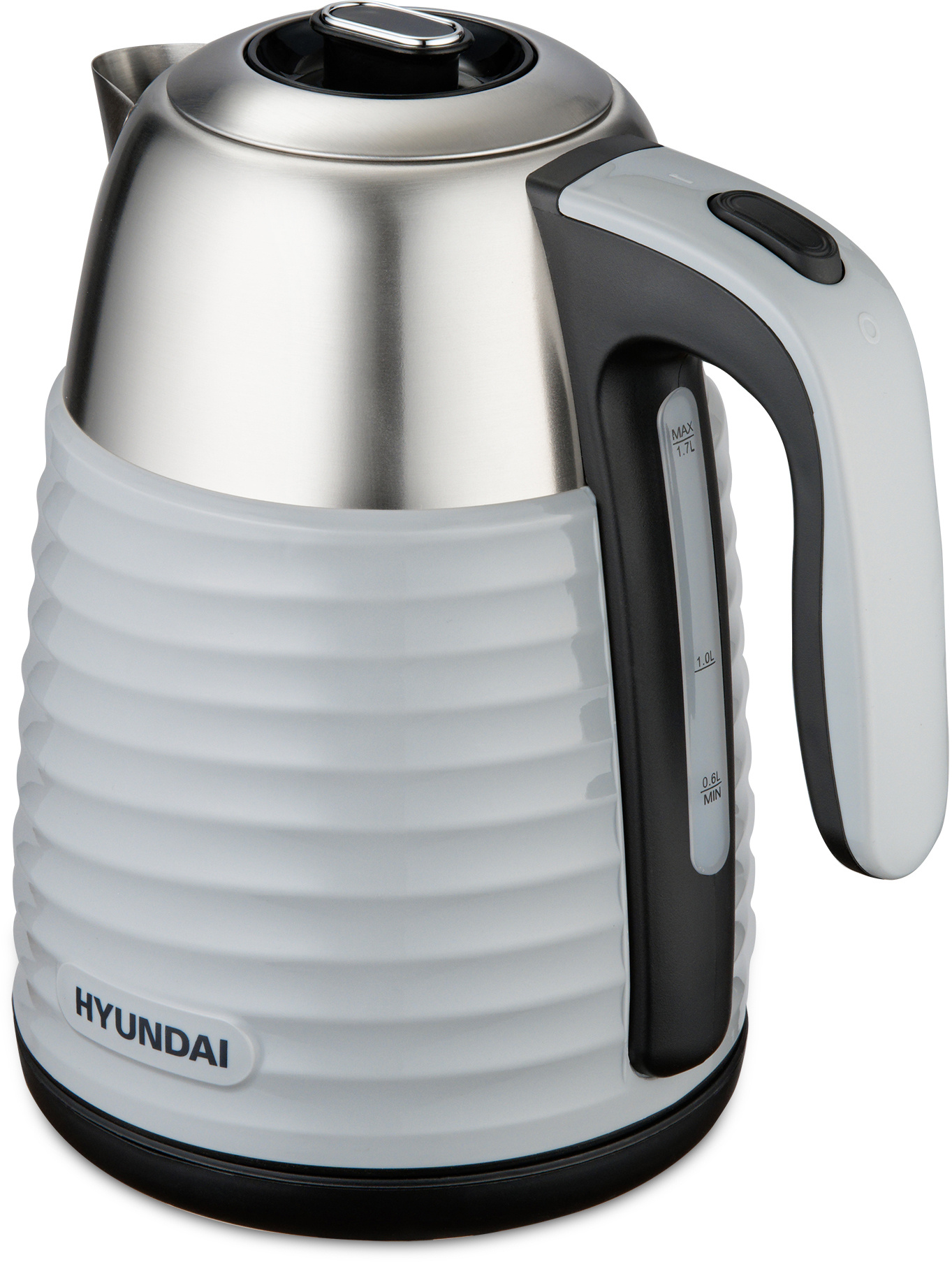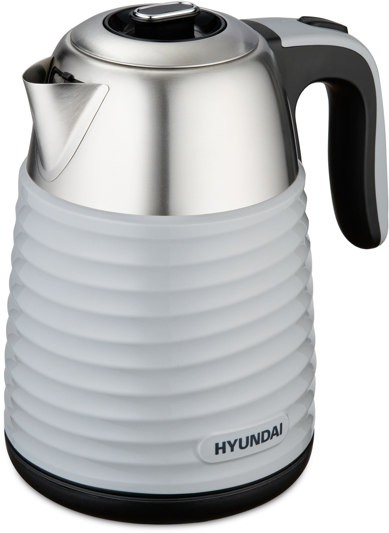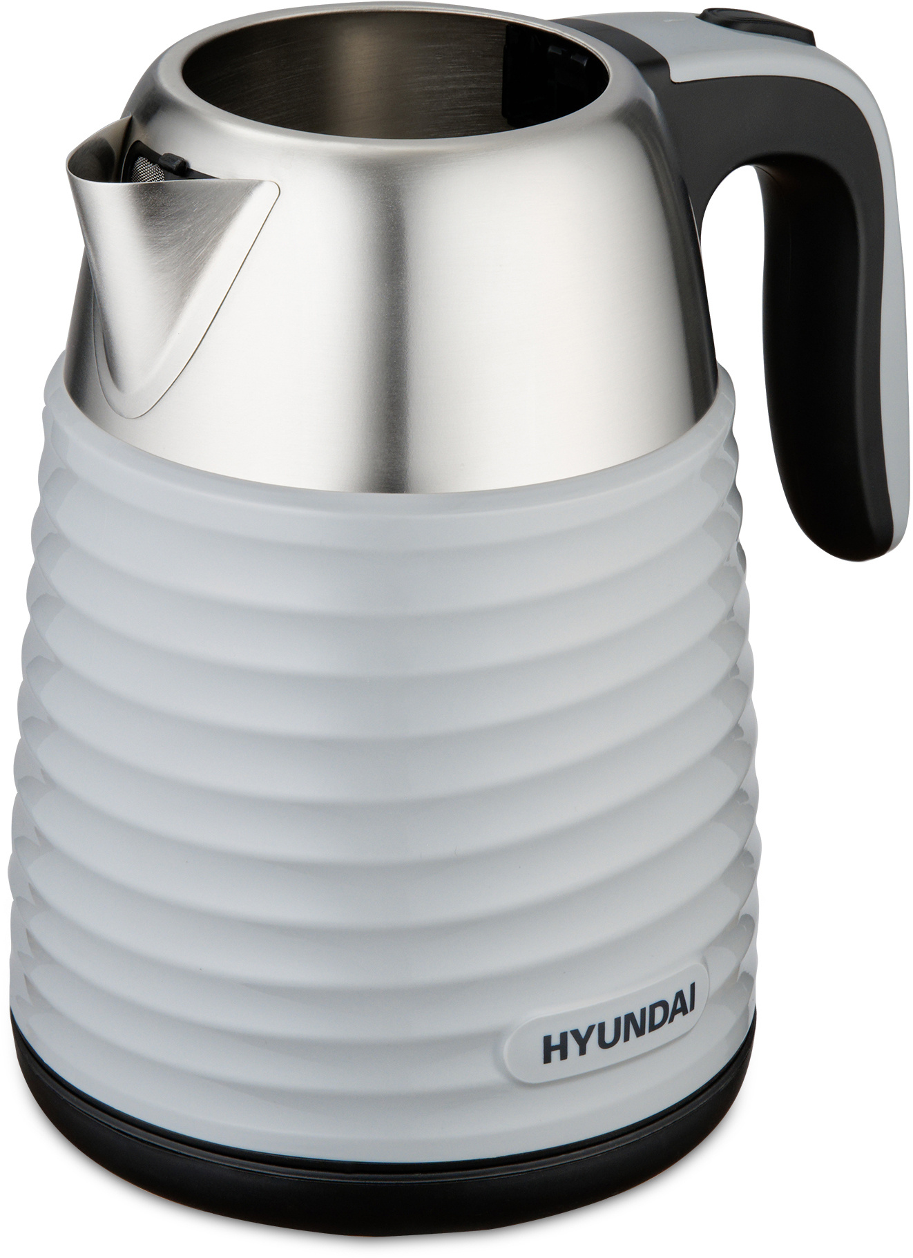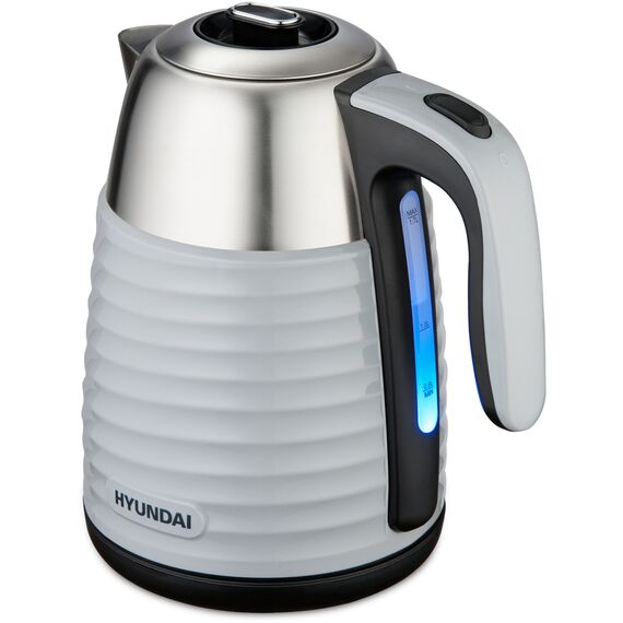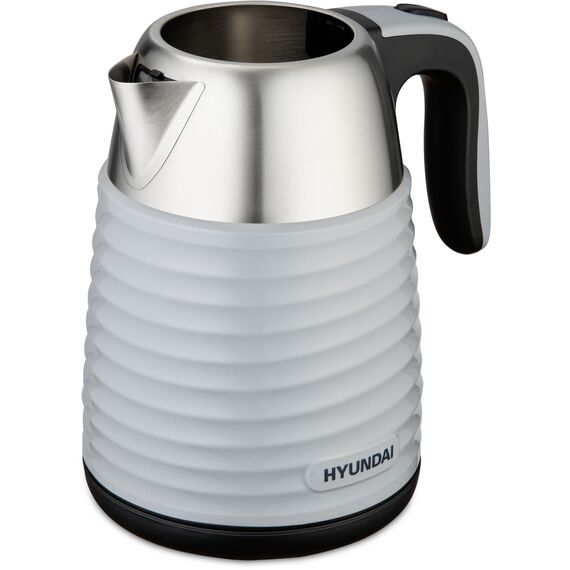 Прибор вмещает до 1.7 л воды и кипятит её за считанные минуты благодаря встроенным 2200 Вт мощности. Учитывая скромные габариты, это хороший показатель. При этом в качестве материала для корпуса устройства, изготовленного в минималистичном сером металлике с рифлёной средней частью, была выбрана нержавеющая сталь. Такое конструкционное решение значительно продлевает срок службы Hyundai HYK-S4804 даже при частом использовании. Стенки девайса имеют двойной слой, чтобы исключить вероятность обжечься и придать ему неповторимый вид. Без воды устройство включиться не может, сработает система защиты.